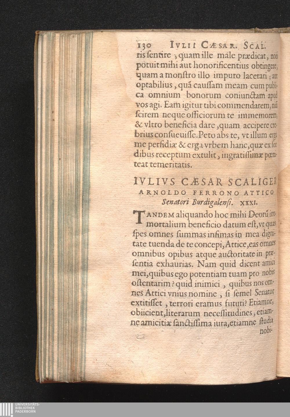 Ivlivs Cæsar Scaliger Arnoldo Ferrono Attico Senatori Burdigalensi. XXXI.