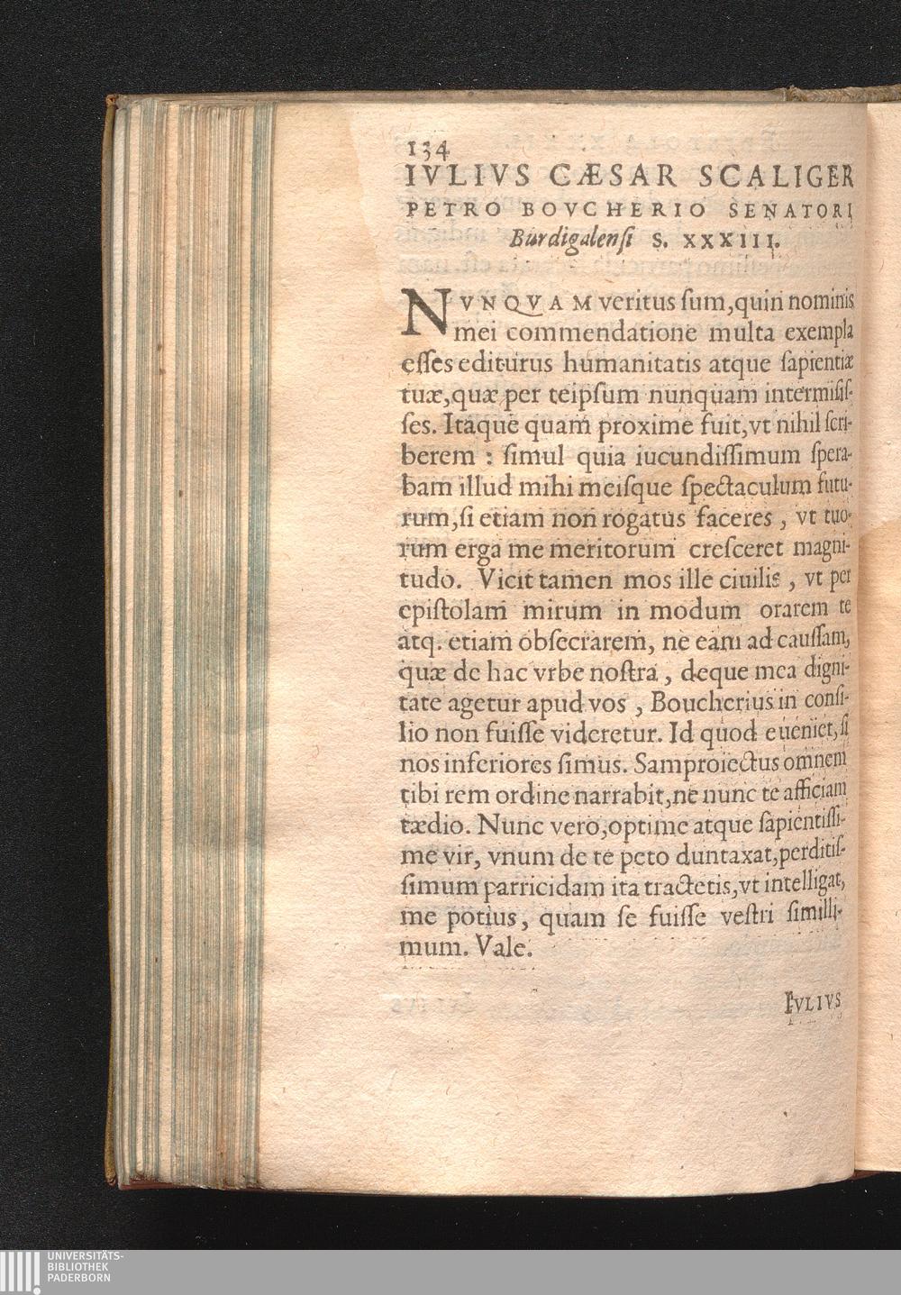 Ivlivs Cæsar Scaliger Petro Bovcherio Senatori Burdigalensi S. XXXIII.