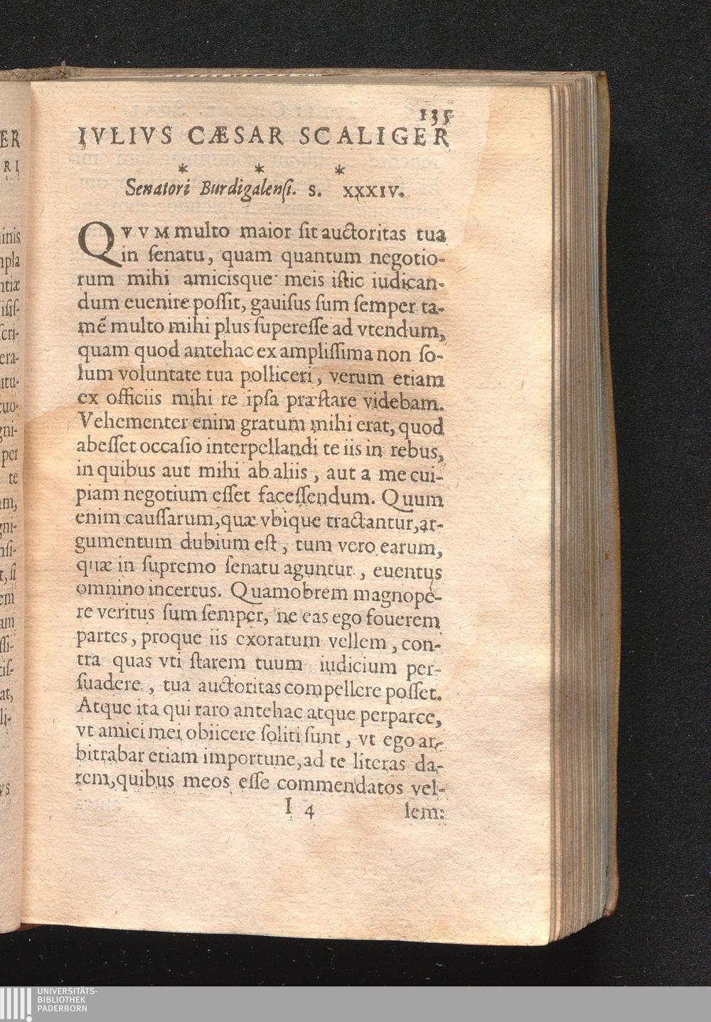 Ivlivs Cæsar Scaliger Senatori Burdigalensi. S. XXXIV.