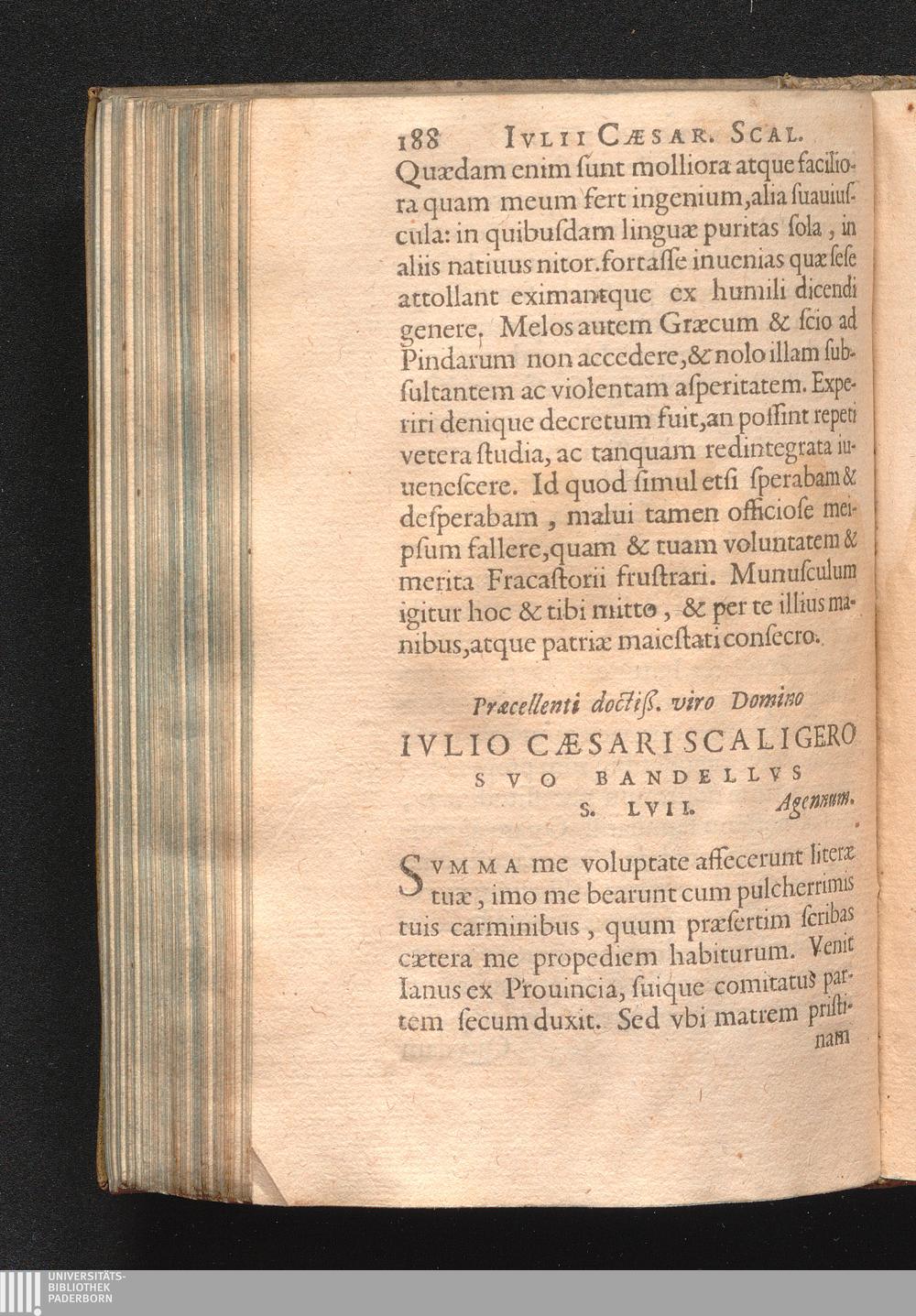 Præcellenti doctiß. viro Domino Ivlio Cæsariscaligero Svo Bandellvs S. LVII.
