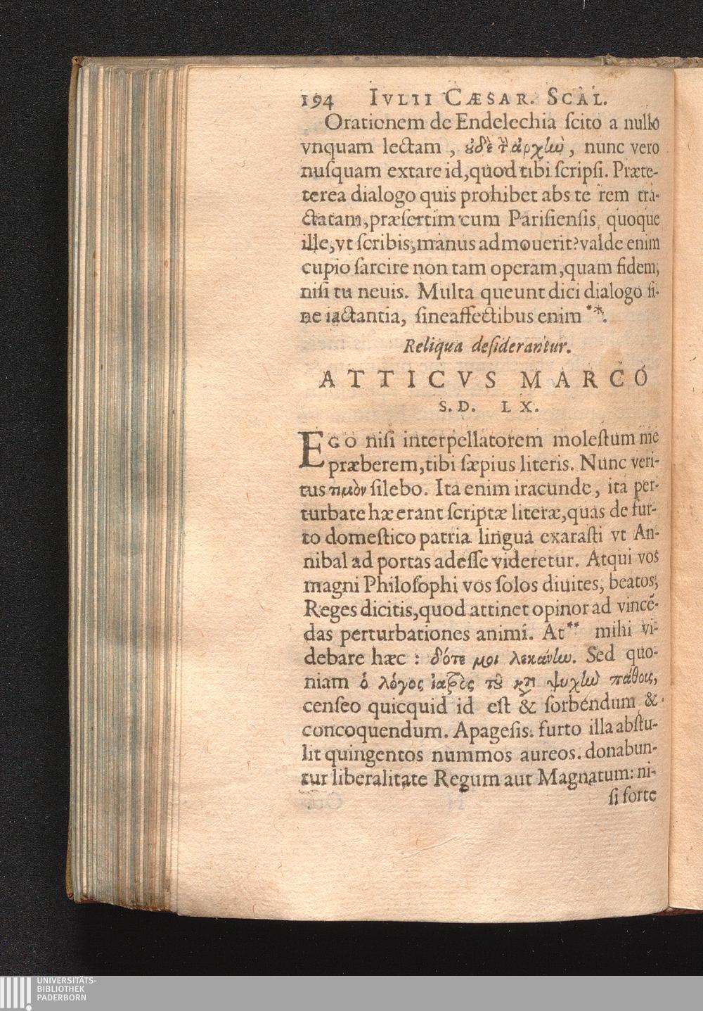 Reliqua desiderantur. Atticvs Marco S. D. LX.