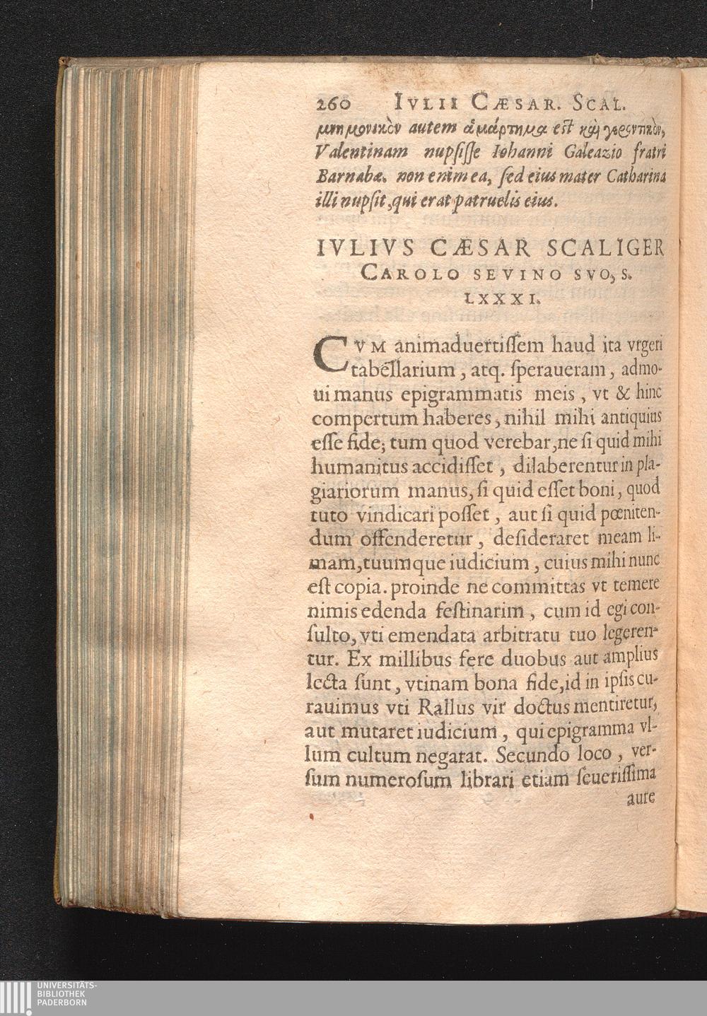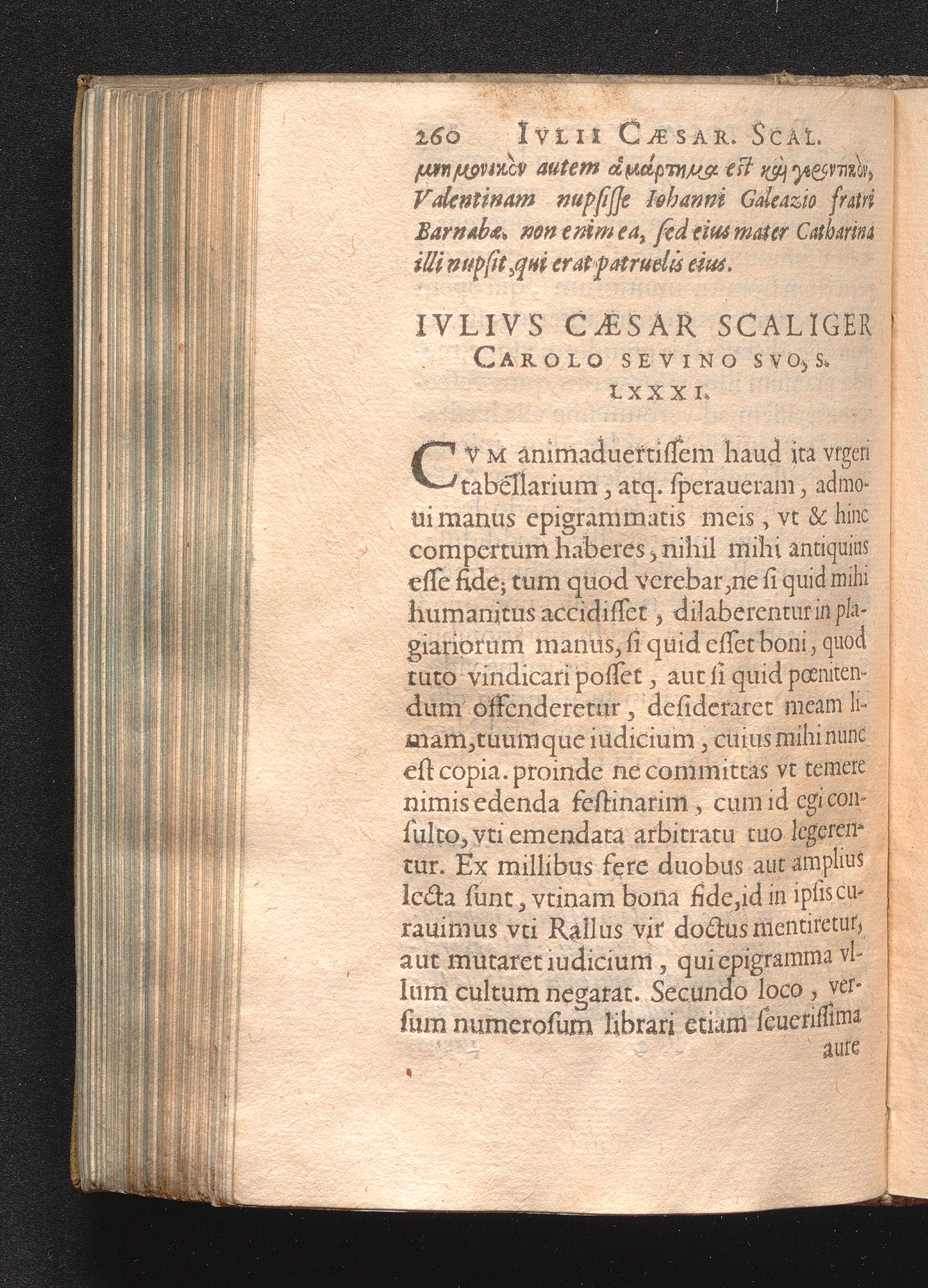 Ivlivs Cæsar Scaliger Carolo Sevino Svo, S. LXXXI.