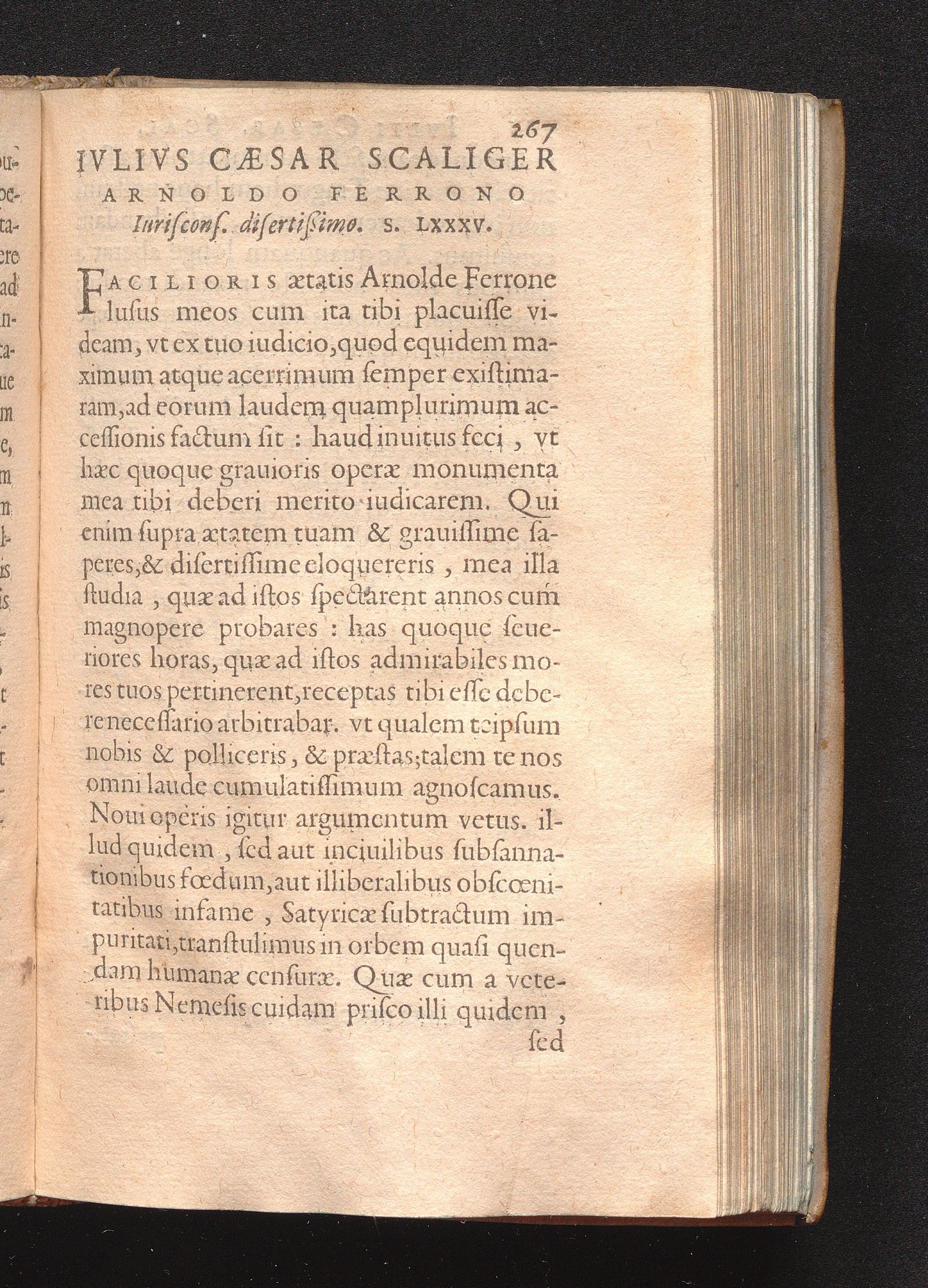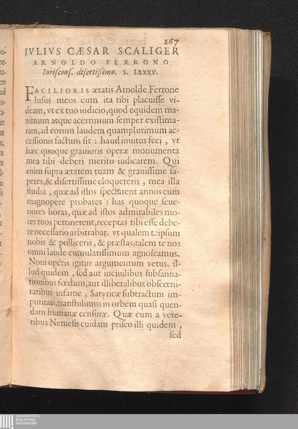 Ivlivs Cæsar Scaliger Arnoldo Ferrono Iuriscons. disertißimo. S. LXXXV.