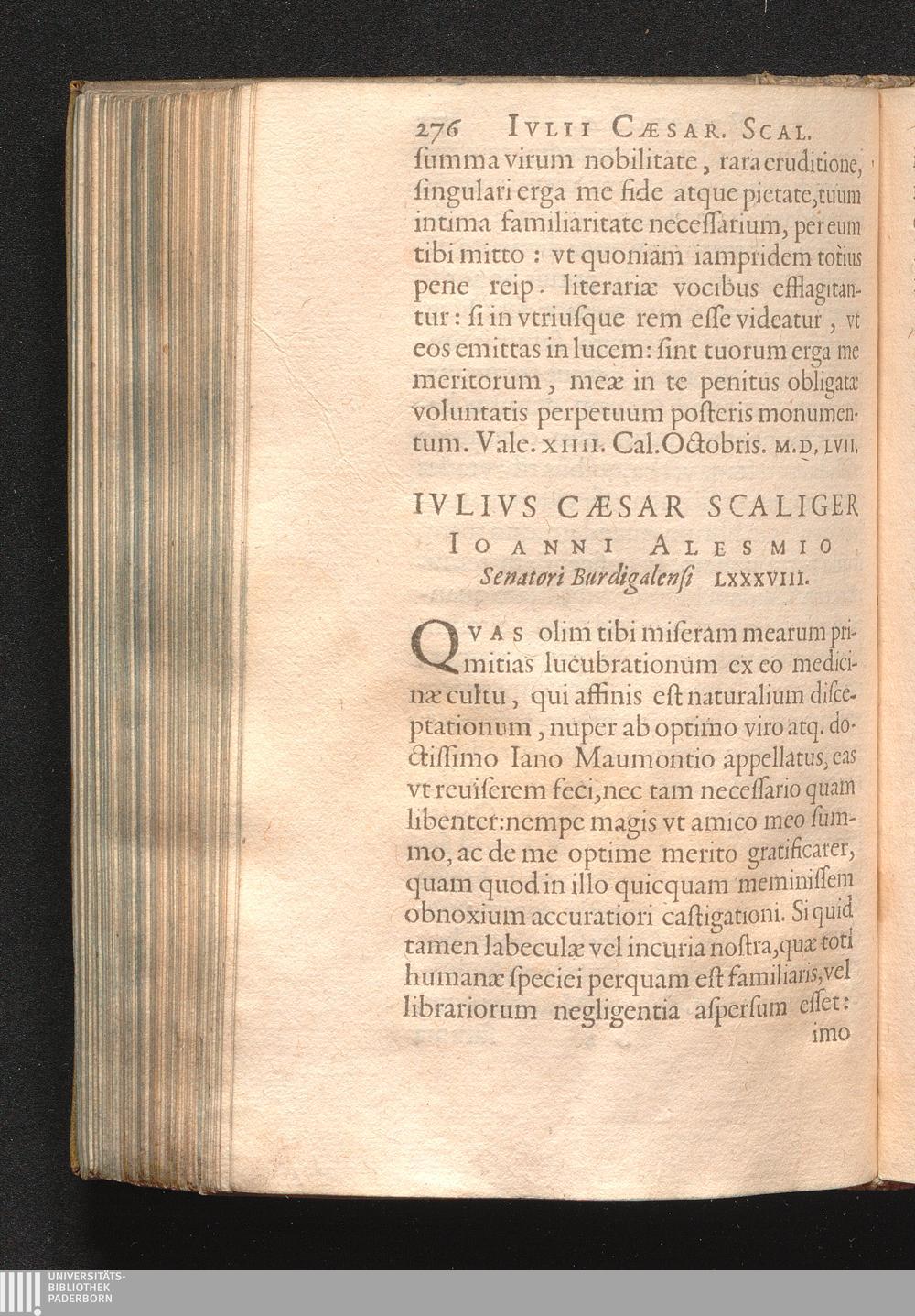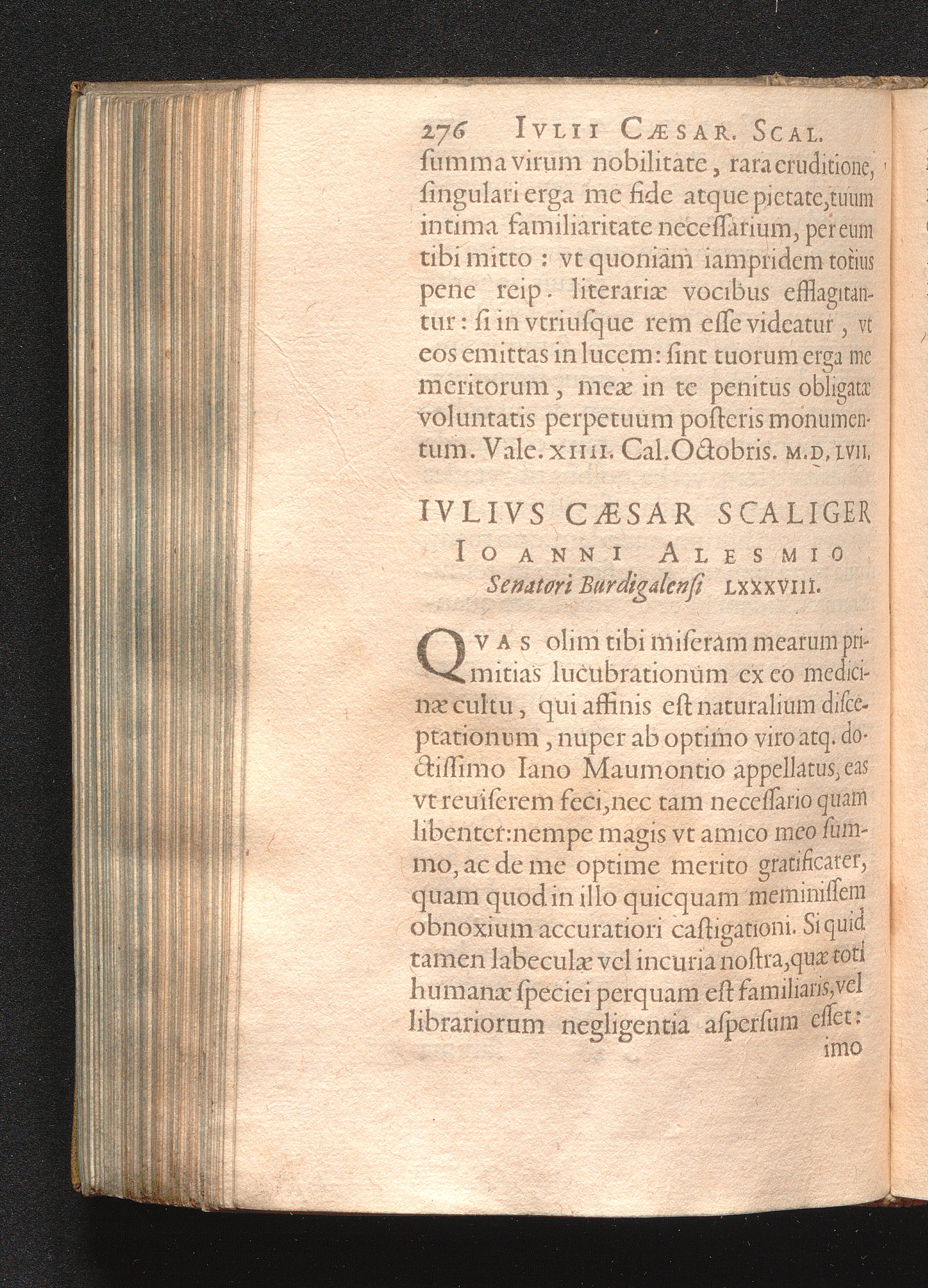 Ivlivs Cæsar Scaliger Ioanni Alesmio Senatori Burdigalensi LXXXVIII.