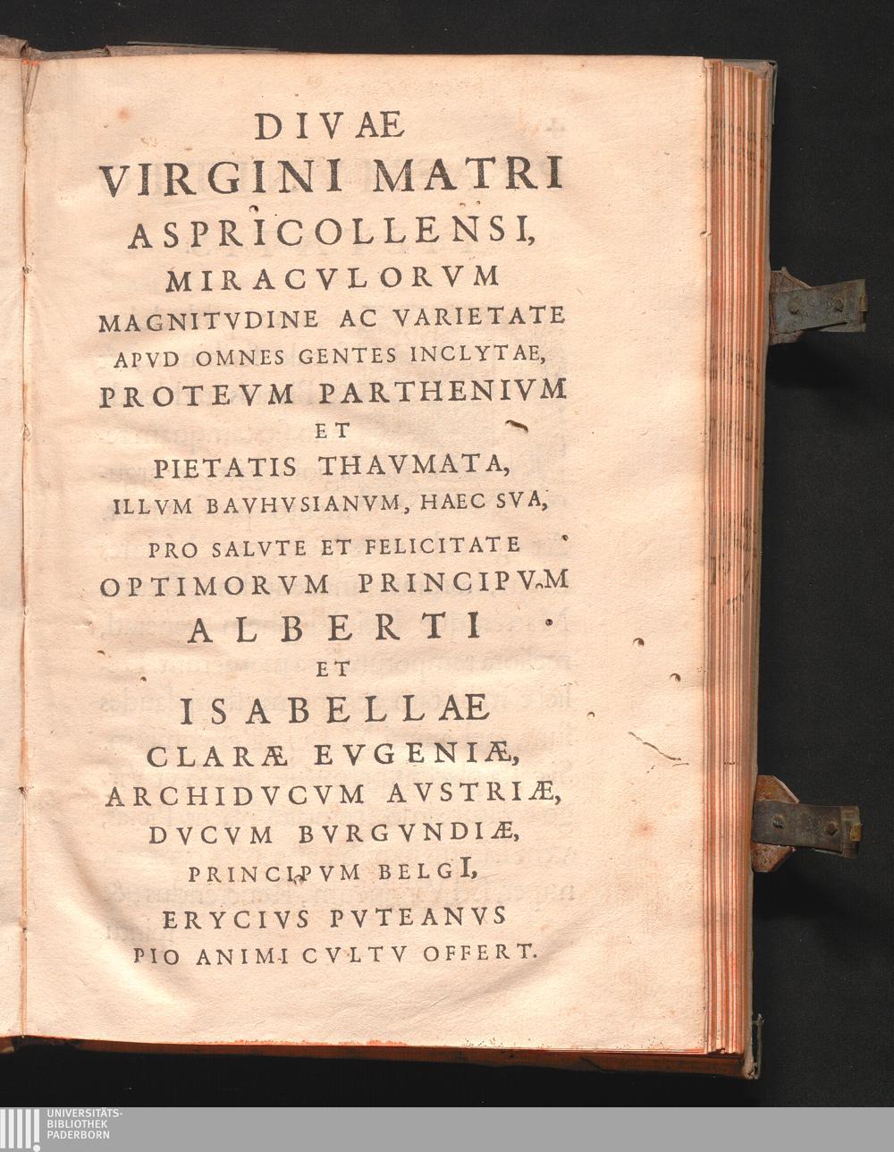 Eryci[i] Pvteani Pietatis Thavmata In Bernardi Bavhvsi[i] è Societate Iesv Protevm Parthenivm : vnius Libri Versvm, vnius Versvs Librum, Stellarum numero, siue formis M. XXII. variatum