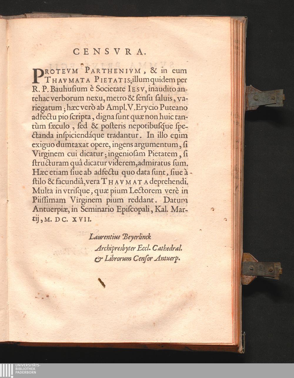 Eryci[i] Pvteani Pietatis Thavmata In Bernardi Bavhvsi[i] è Societate Iesv Protevm Parthenivm : vnius Libri Versvm, vnius Versvs Librum, Stellarum numero, siue formis M. XXII. variatum