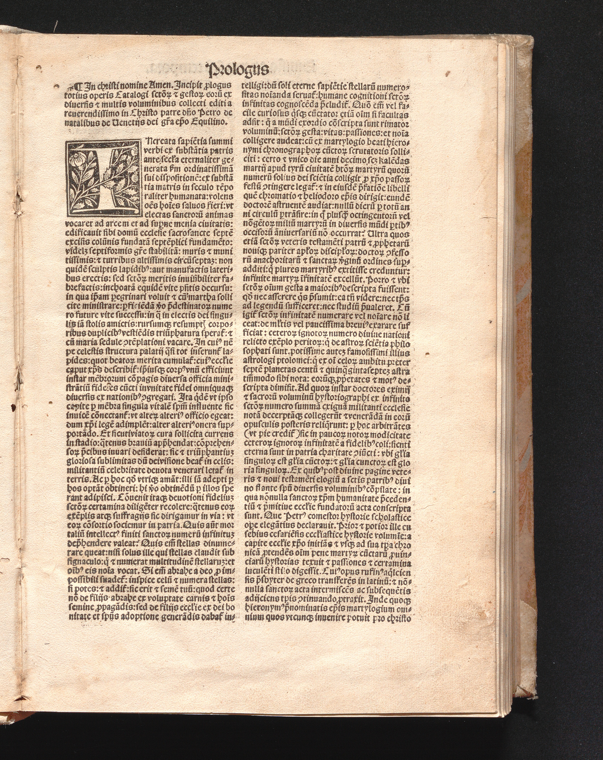 CAtalogus sancto//rum [et] gestor[um] eor[um] / ex diuersis// voluminibus collectus: edi-//tus a Reuerendissimo in [Christ]o// patre d[omi]no Petro de Natali-//bus de venetijs dei gratia ep[iscop]o Equilino