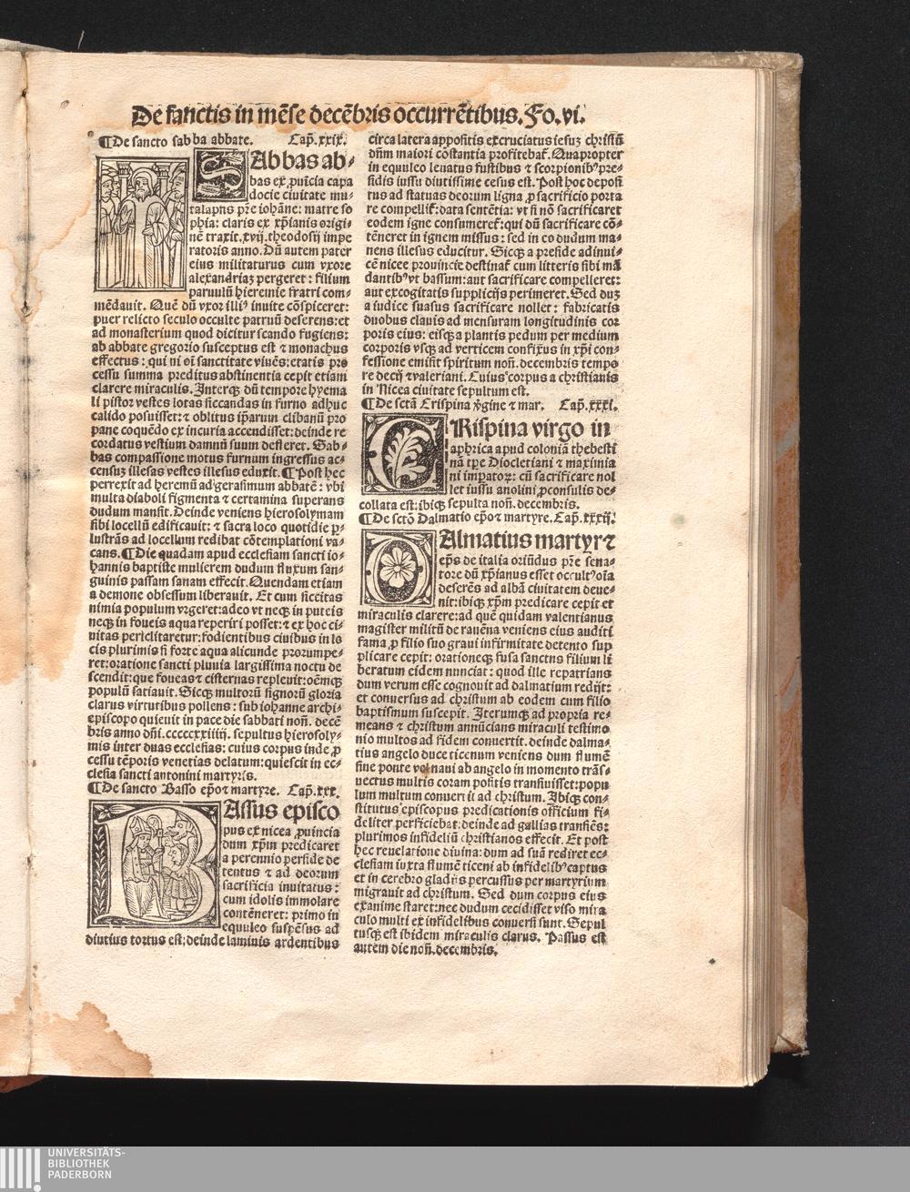 CAtalogus sancto//rum [et] gestor[um] eor[um] / ex diuersis// voluminibus collectus: edi-//tus a Reuerendissimo in [Christ]o// patre d[omi]no Petro de Natali-//bus de venetijs dei gratia ep[iscop]o Equilino