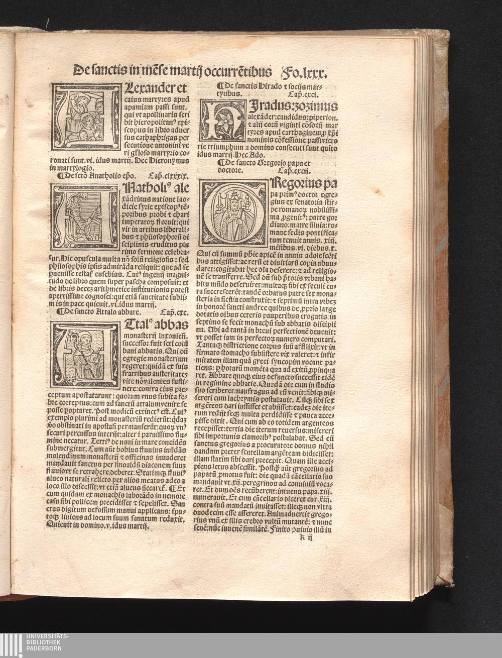 CAtalogus sancto//rum [et] gestor[um] eor[um] / ex diuersis// voluminibus collectus: edi-//tus a Reuerendissimo in [Christ]o// patre d[omi]no Petro de Natali-//bus de venetijs dei gratia ep[iscop]o Equilino