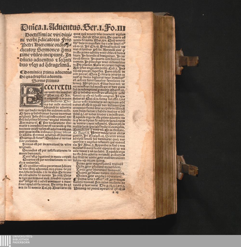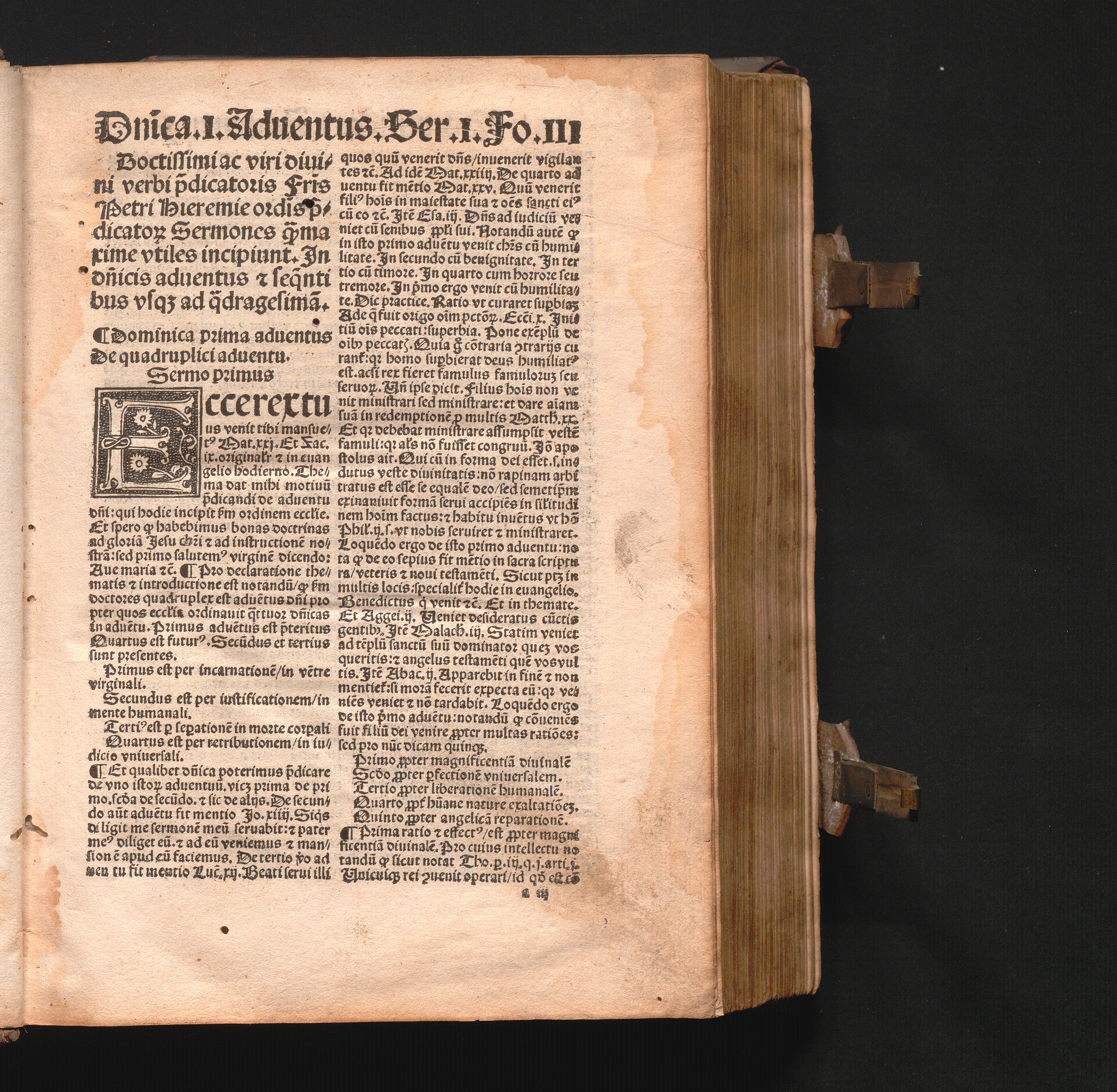 Sermones: Petri Hieremie Panormitani ex Sicilia: F. co[n]uent[us] ordinis Predicatoru[m] bononiensiu[m]: tam preclari q[uam] omnigene eruditio[n]is refertissimi. omnibusq[ue] euangelica documenta semina[n]tibus: et gratiosi et necessarij: qui ea serie hoc libro continentur : De aduentu vsq[ue] ad quadragesimam: Quadragesimales de p[e]c[a]to[rum]: Quadragesimales de p[oe]n[itent]ia. De expositio[n]e orat[i]o[n]is d[omi]nice De dece[m] preceptis vna cum passione Jesu christi. De fide: quadragesimales. De sanctis per anni circulu[m].