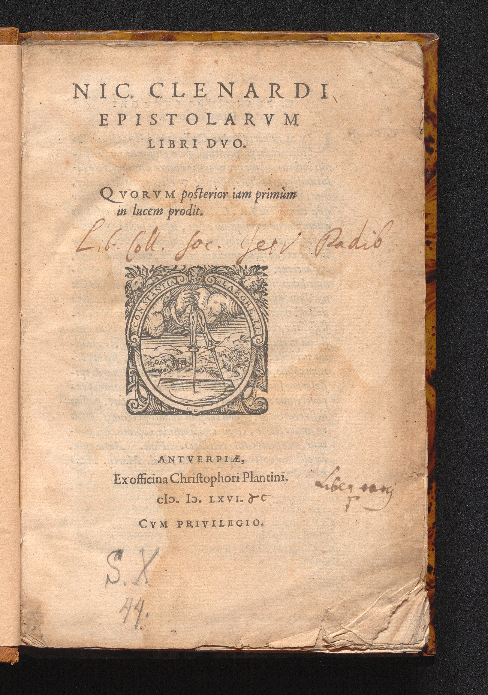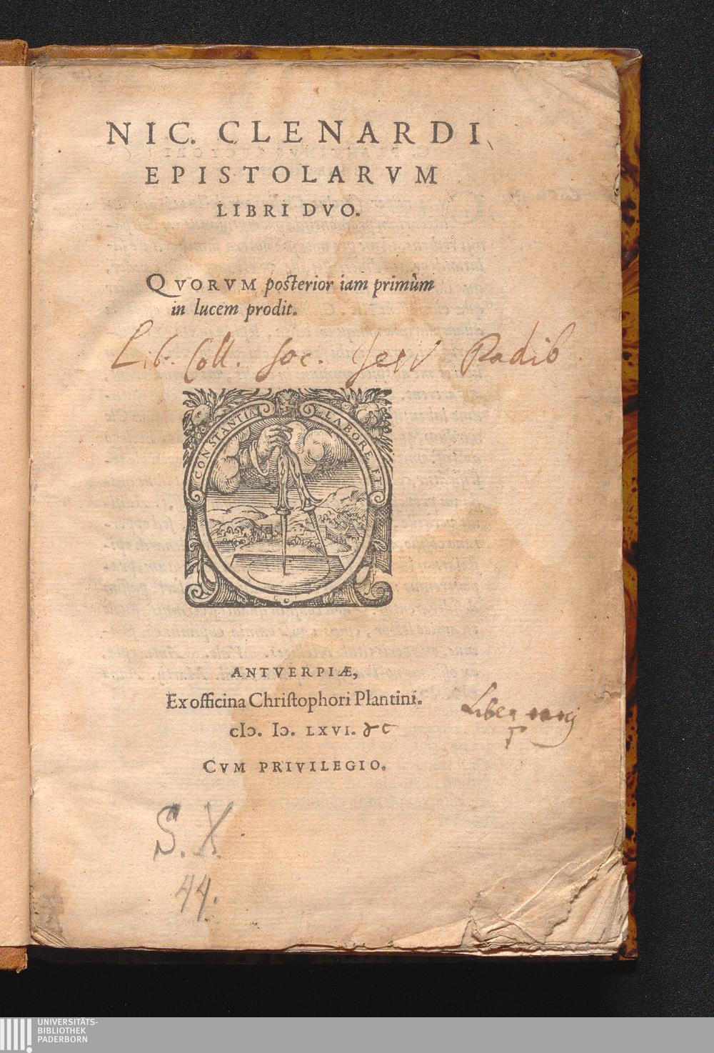 Nic. Clenardi Epistolarvm Libri Dvo : Qvorvm posterior iam primùm in lucem prodit
