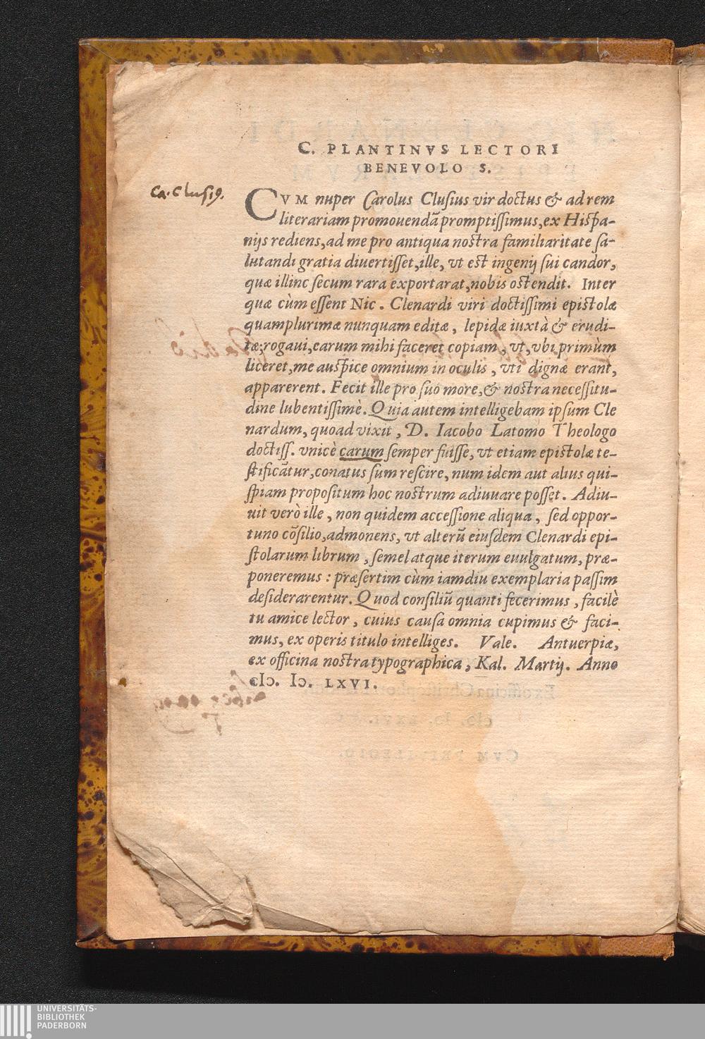 C. Plantinvs Lectori Benevolo S.