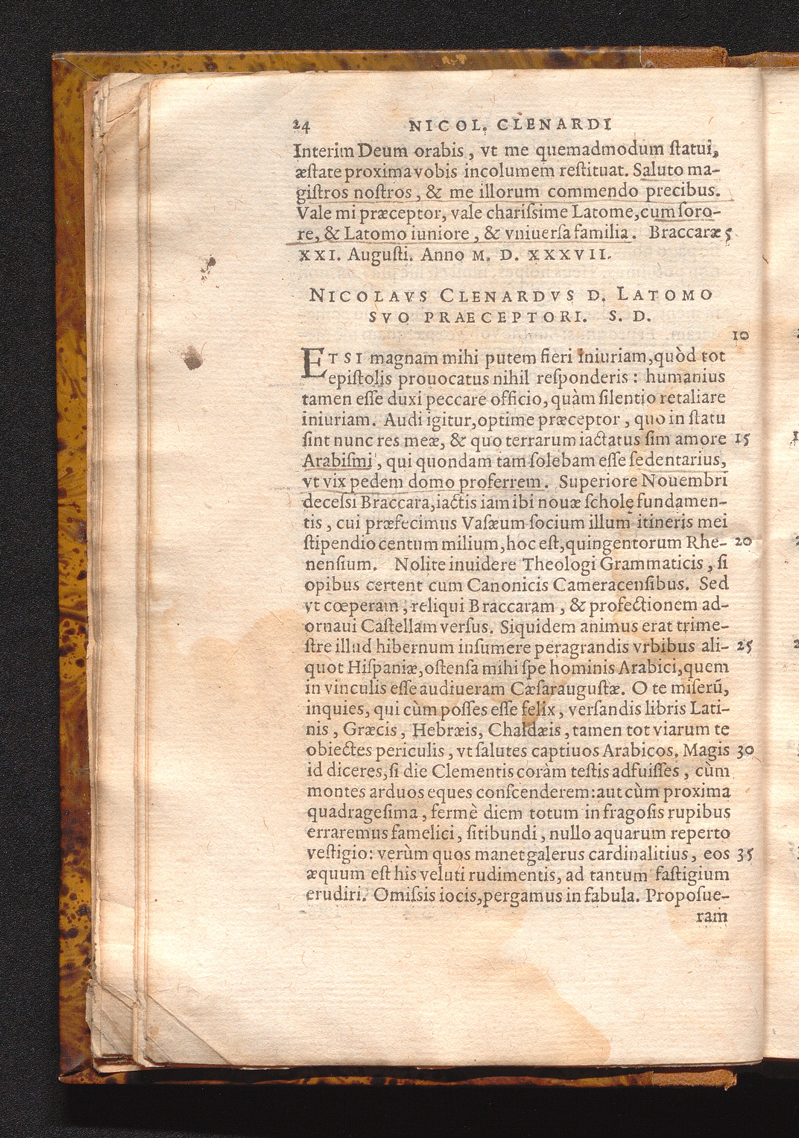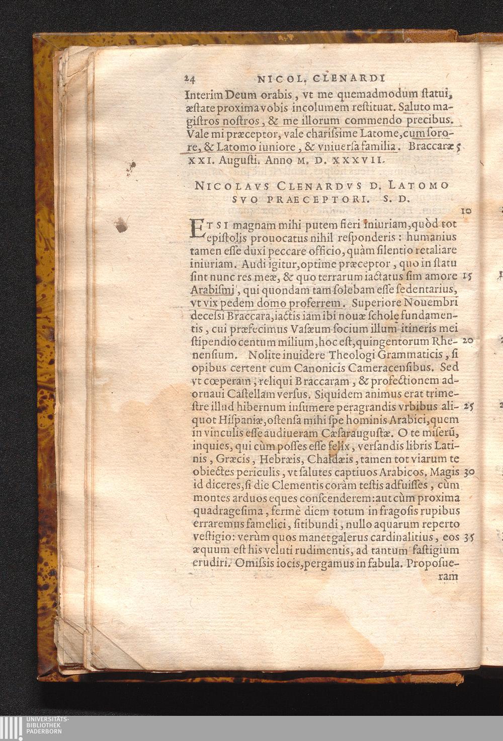 Nicolavs Clenardvs D. Latomo Svo Praeceptori. S. D.