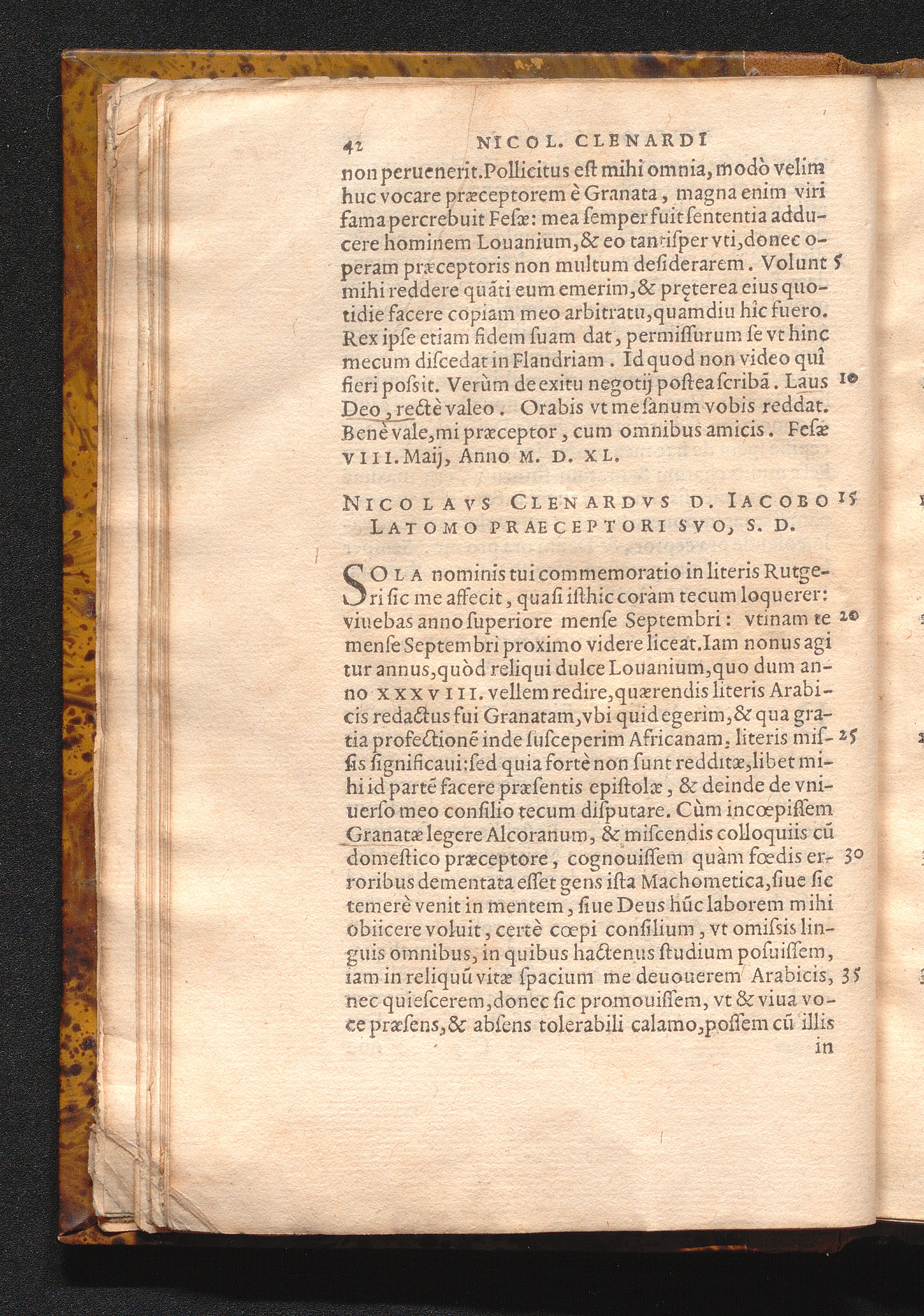 Nicolavs Clenardvs D. Iacobo Latomo Praeceptori Svo, S. D.