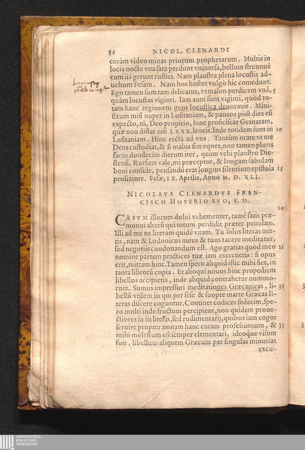Nicolavs Clenardvs Francisco Hoverio Svo, S. D.