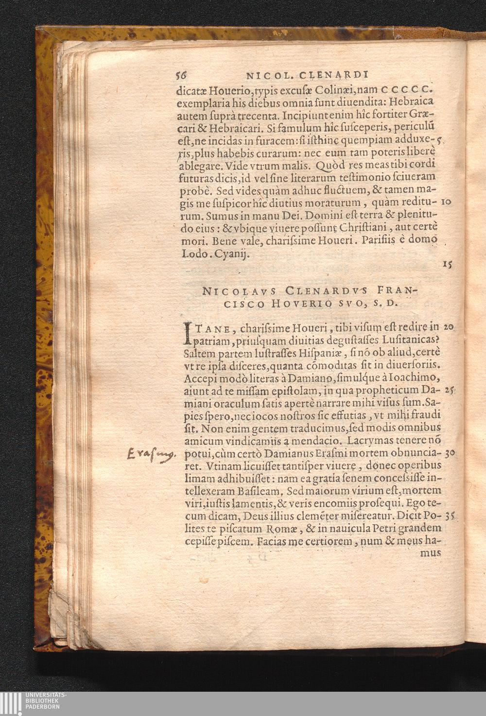 Nicolavs Clenardvs Francisco Hoverio Svo, S. D.