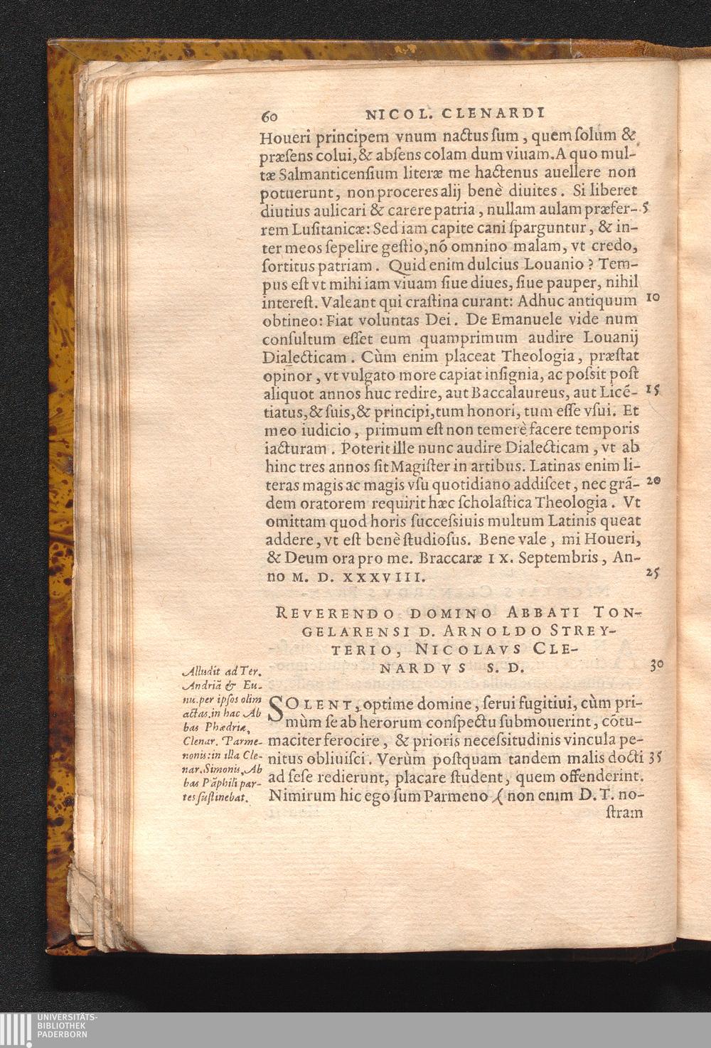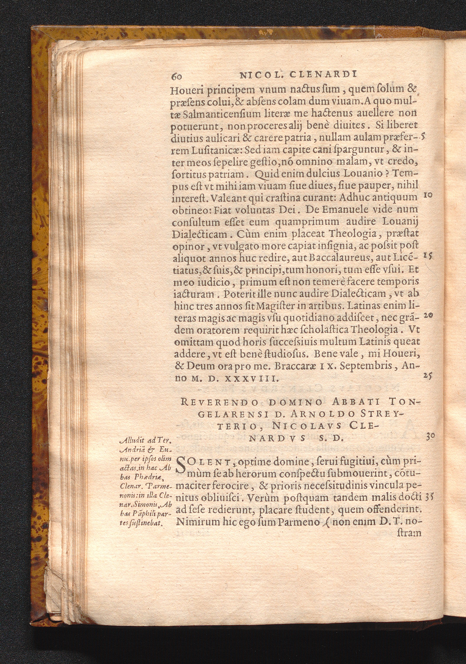 Reverendo Domino Abbati Tongelarensi D. Arnoldo Streyterio, Nicolavs Clenardvs S.[...]