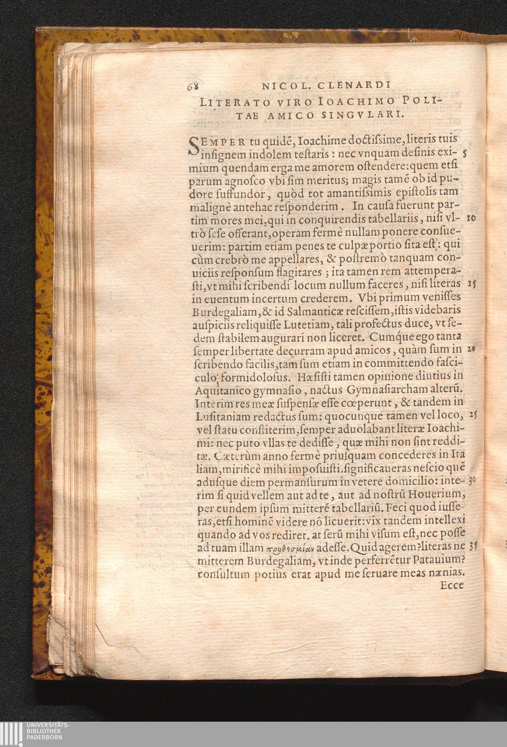 Nic. Clenardi Epistolarvm Libri Dvo : Qvorvm posterior iam primùm in lucem prodit