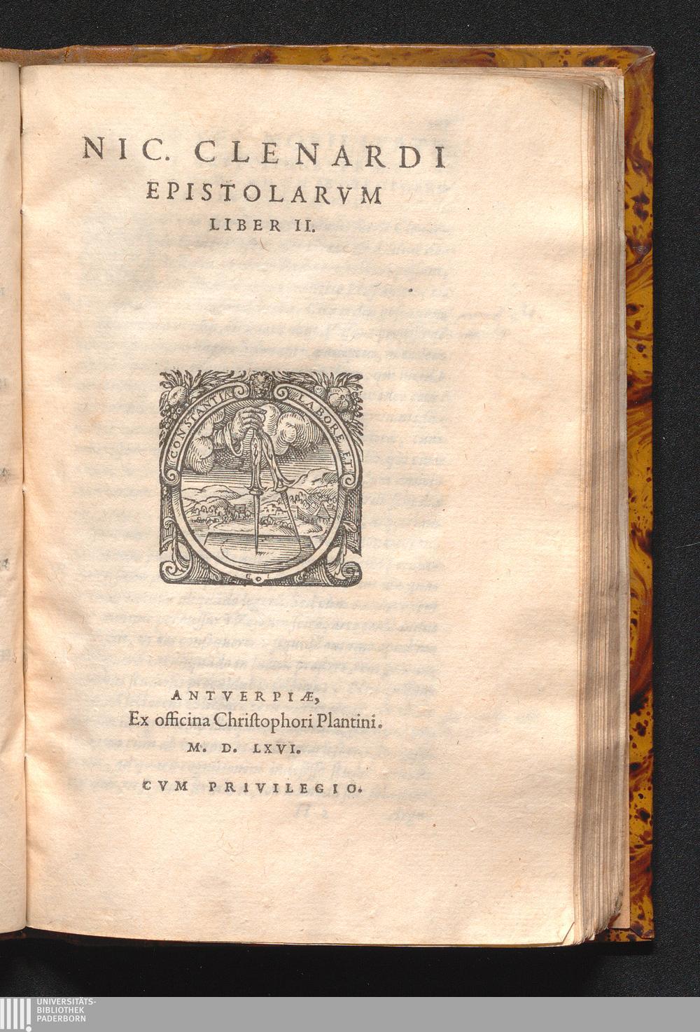 Nic. Clenardi Epistolarvm Libri Dvo : Qvorvm posterior iam primùm in lucem prodit