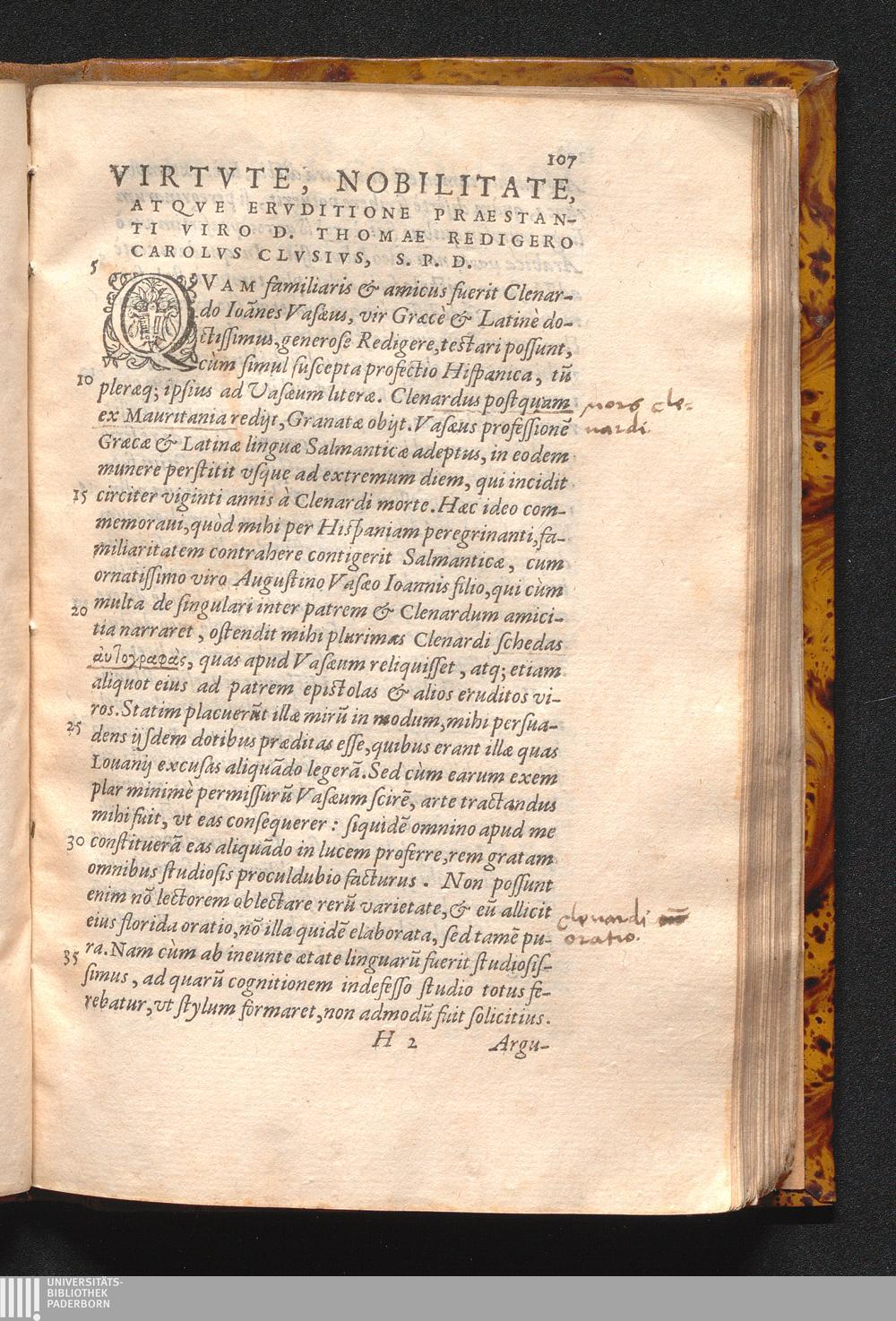 Virtvte, Nobilitate, Atqve Ervditione Praestanti Viro D. Thomae Redigero Carolvs[...]