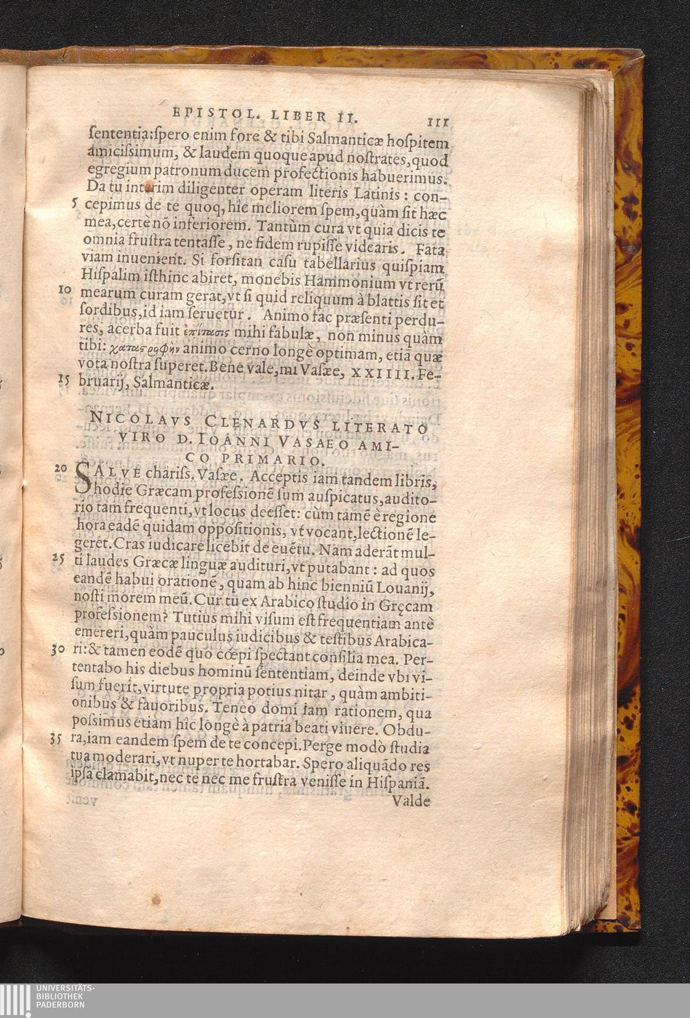 Nicolavs Clenardvs Literato Viro D. Ioanni Vasaeo Amico Primario.