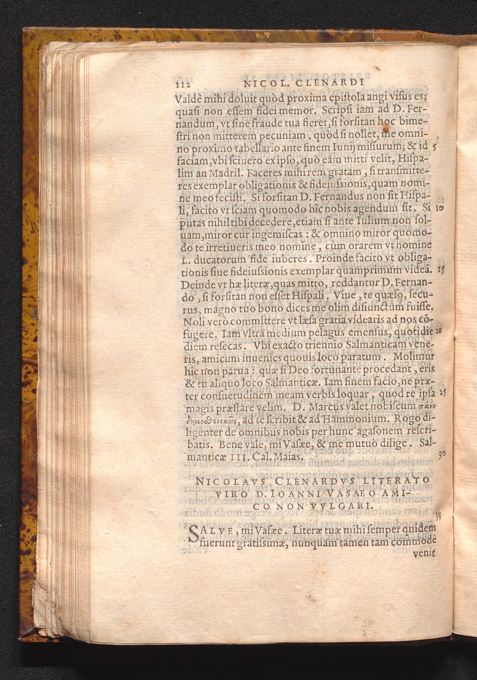 Nicolavs Clenardvs Literato Viro D. Ioanni Vasaeo Amico Non Vvlgari.