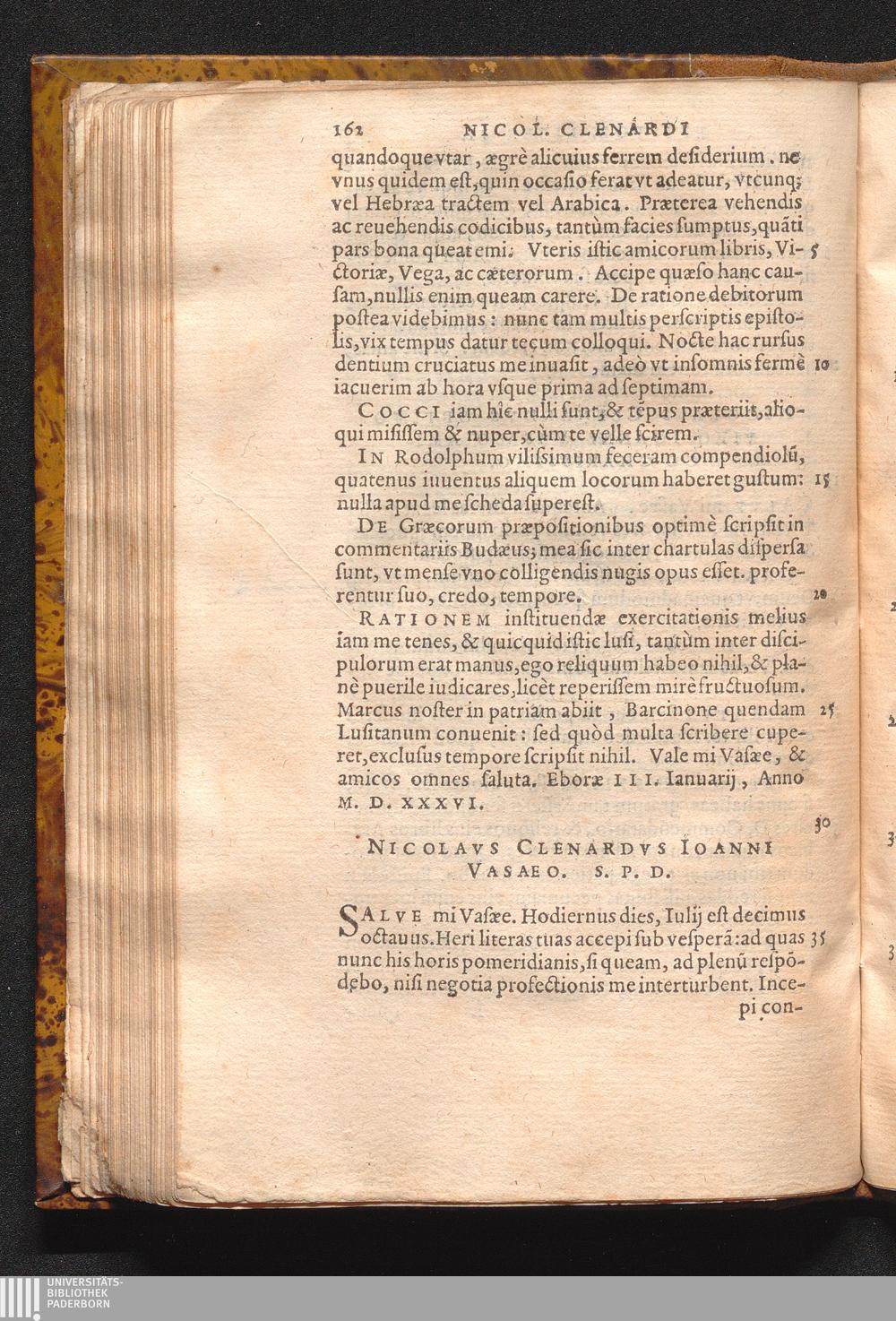 Nicolavs Clenardvs Ioanni Vaaeo. S. P. D.