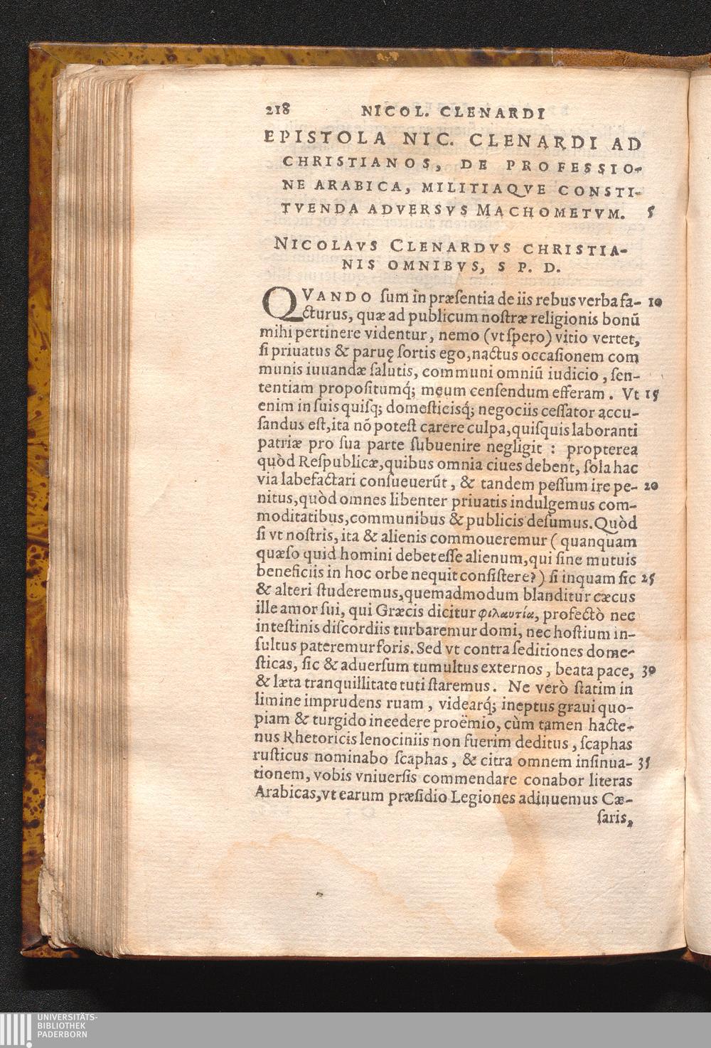 Epistola Nic. Clenardi Ad Christianos, De Professione Arabica, Militiaqve Constitvenda[...]