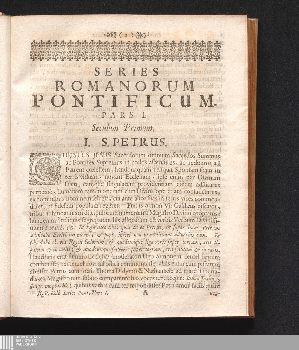 Series Romanorum Pontificum Cum Reflexionibus Historicis : Quas Contra D. Joannem Hübnerum aliósque Lutheranos maximè Historicos, Sub Auspiciis Et Patrociniis Reverendissimorum, Amplissimorum, Excellentissimorum, Illustrissimorum, Illustrium, Generosorum, Prænobilium, Noblilium &c. Trium Anterioris Austriæ Inclytorum Statuum Provincialium &c. In Alma & Perantiqua Cæsareo-Austriaca Universitate Friburgi Brisgoiæ / Disputationi publicæ subjecit, & nunc tertia vice in lucem edidit P. Gregorius Kolb S.J. Historiæ Professor Ordin.