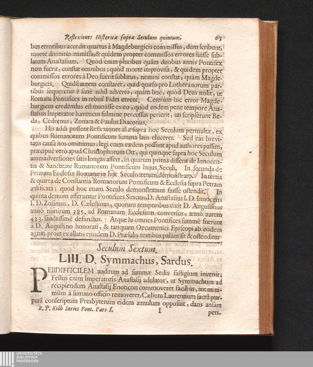 Series Romanorum Pontificum Cum Reflexionibus Historicis : Quas Contra D. Joannem Hübnerum aliósque Lutheranos maximè Historicos, Sub Auspiciis Et Patrociniis Reverendissimorum, Amplissimorum, Excellentissimorum, Illustrissimorum, Illustrium, Generosorum, Prænobilium, Noblilium &c. Trium Anterioris Austriæ Inclytorum Statuum Provincialium &c. In Alma & Perantiqua Cæsareo-Austriaca Universitate Friburgi Brisgoiæ / Disputationi publicæ subjecit, & nunc tertia vice in lucem edidit P. Gregorius Kolb S.J. Historiæ Professor Ordin.