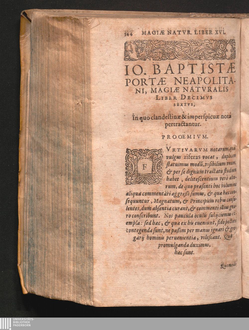 Io. Baptistæ Portæ Neapolitani Magiæ Naturalis Libri Viginti : In Quibvs Scientiarvm Naturalium divitiæ, & deliciæ demonstrantur ; Accessit Index, rem omnem dilucidè repræsentans, copiosissimus. Librorum ordinem, qui in hoc opere continentur, versa pagina indicabit