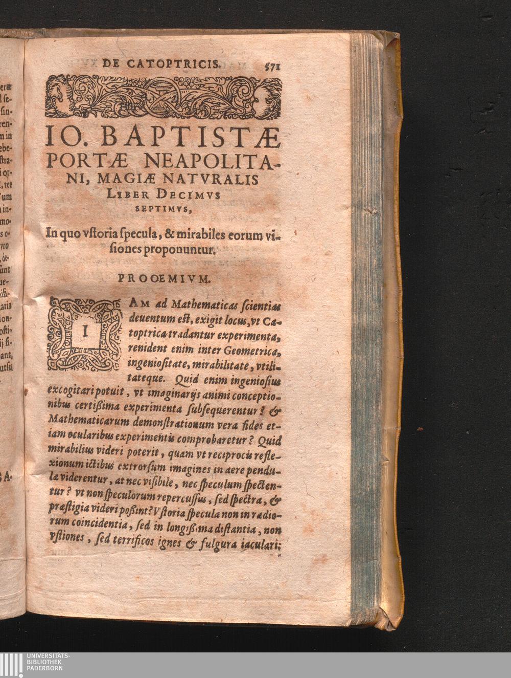 Io. Baptistæ Portæ Neapolitani Magiæ Naturalis Libri Viginti : In Quibvs Scientiarvm Naturalium divitiæ, & deliciæ demonstrantur ; Accessit Index, rem omnem dilucidè repræsentans, copiosissimus. Librorum ordinem, qui in hoc opere continentur, versa pagina indicabit
