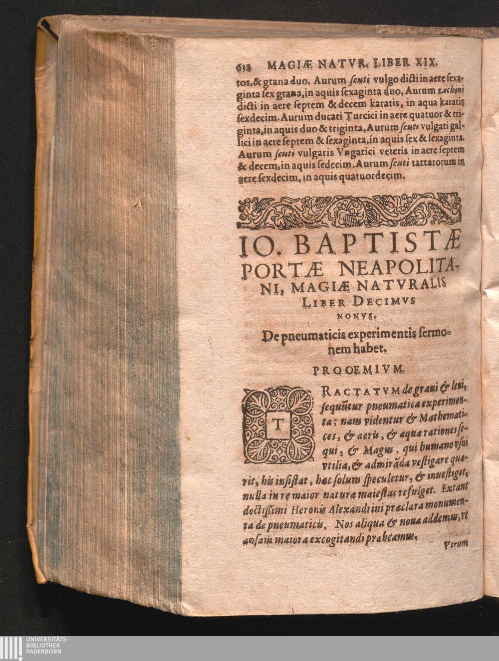 Io. Baptistæ Portæ Neapolitani Magiæ Naturalis Libri Viginti : In Quibvs Scientiarvm Naturalium divitiæ, & deliciæ demonstrantur ; Accessit Index, rem omnem dilucidè repræsentans, copiosissimus. Librorum ordinem, qui in hoc opere continentur, versa pagina indicabit