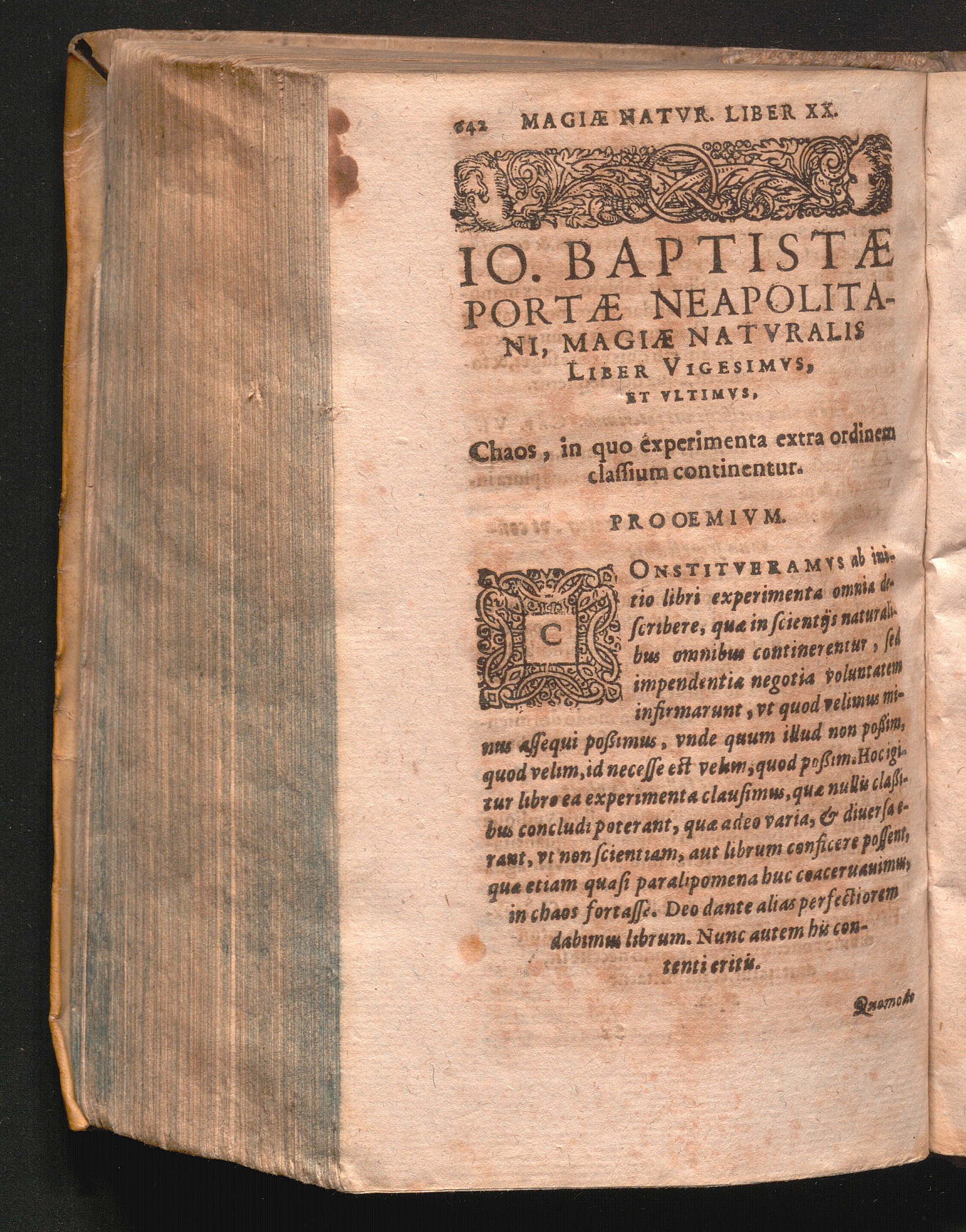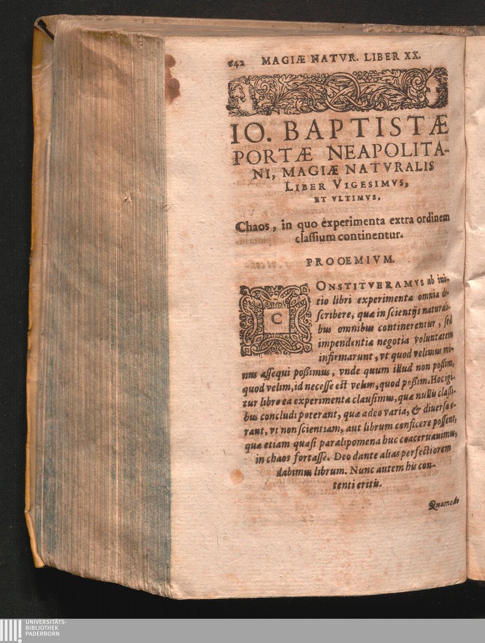 Io. Baptistæ Portæ Neapolitani Magiæ Naturalis Libri Viginti : In Quibvs Scientiarvm Naturalium divitiæ, & deliciæ demonstrantur ; Accessit Index, rem omnem dilucidè repræsentans, copiosissimus. Librorum ordinem, qui in hoc opere continentur, versa pagina indicabit