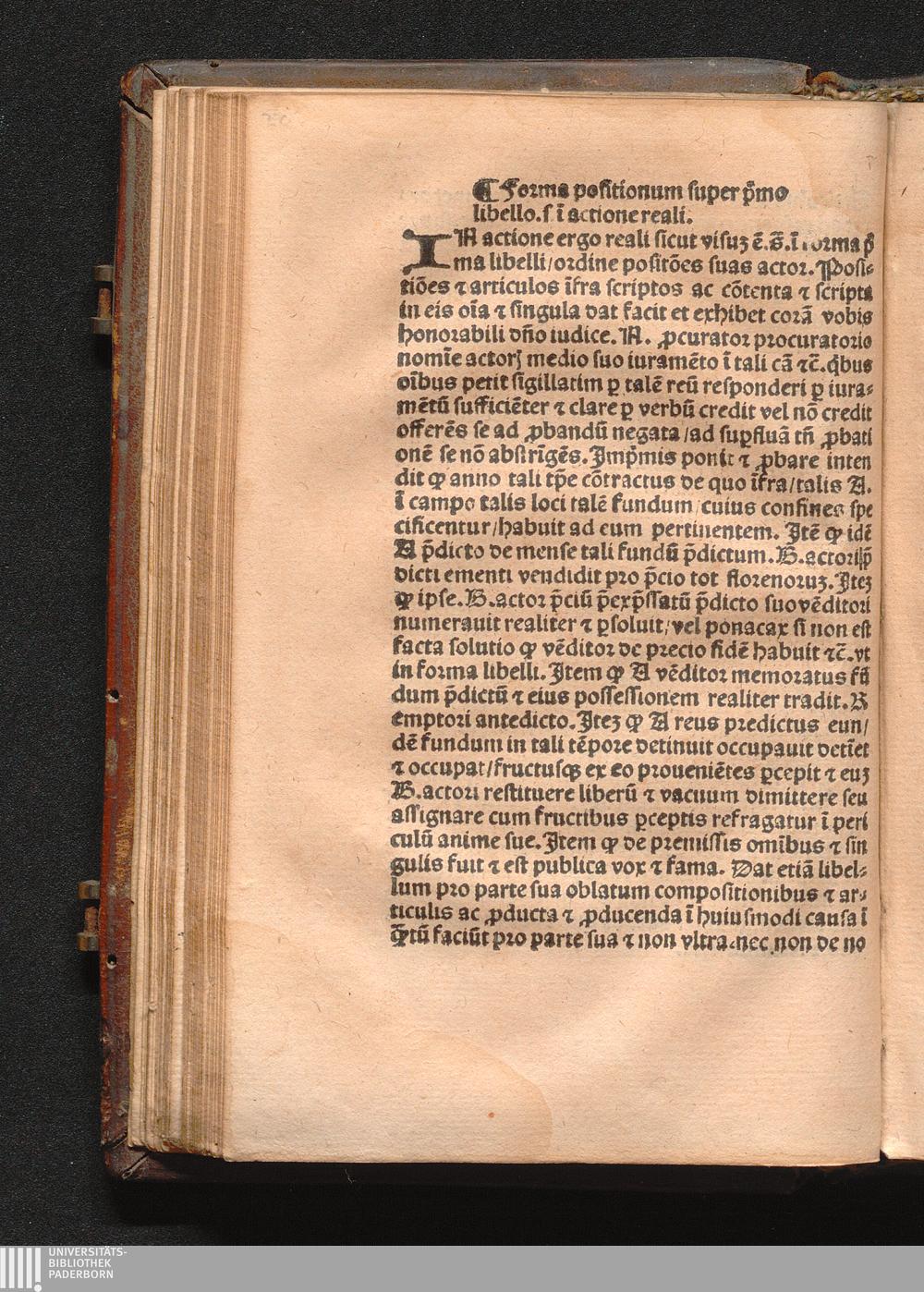 Forma positionum super p[ri]mo libello. s i[n] actione reali.