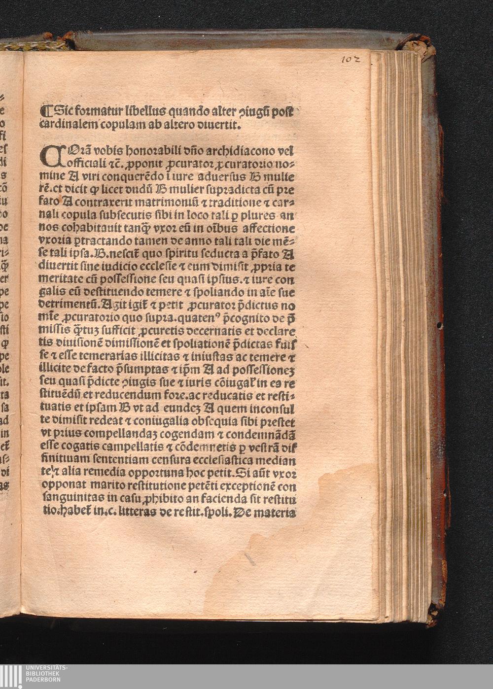 Sic formatur libellus quando alter [con]iugu[m] post cardinalem copulam ab altero[...]