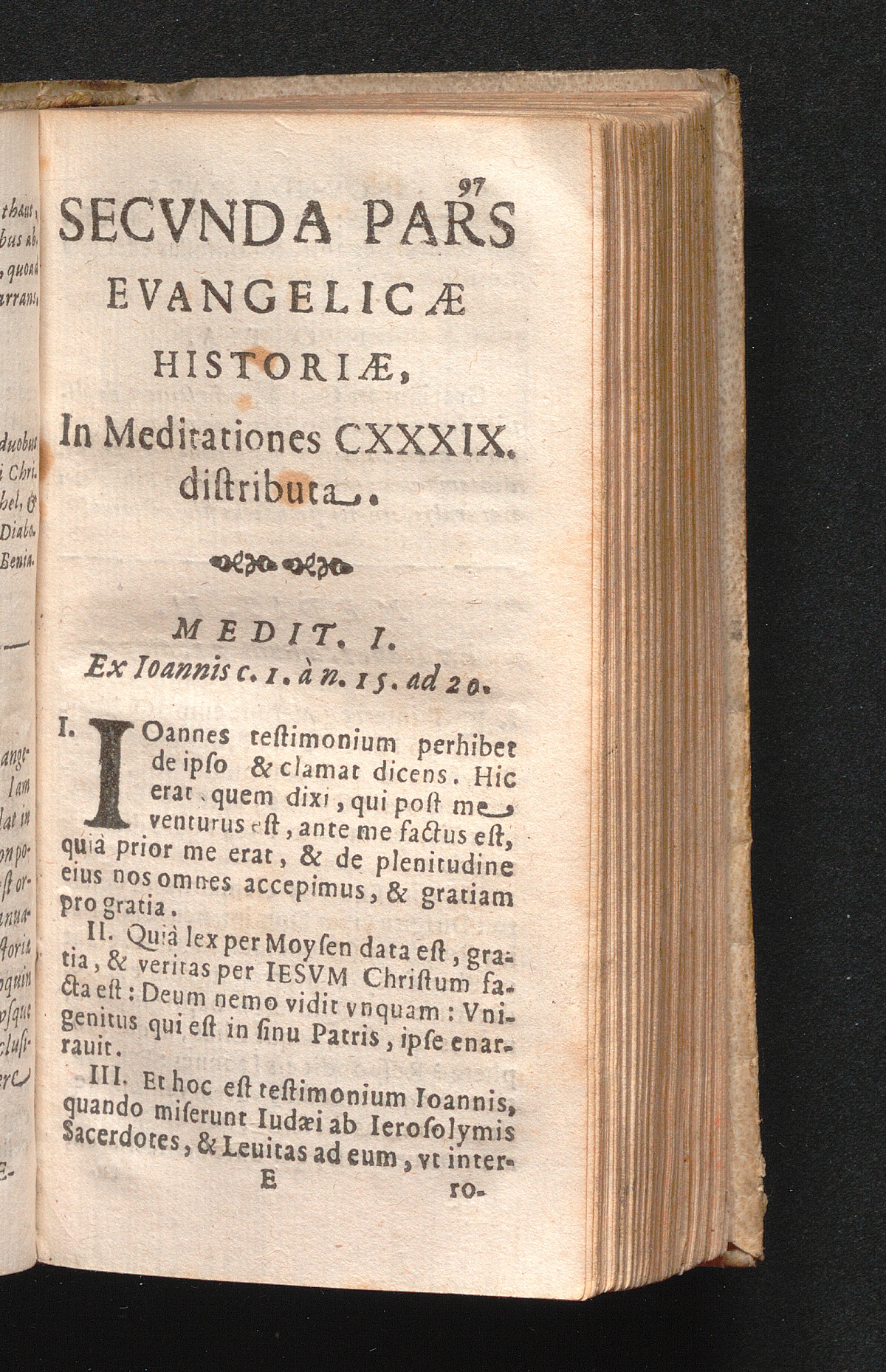 Evangelivm Vnicvm Domini Nostri Iesv Christi : Ex Verbis ipsis quatuor Euangelistarum conflatum, & in Meditationes distributum. Paucis aliquot alijs Meditationibus adiectis, & Notis pro Historia sensuque literali / Avthore R. P. Io. Baptista Ricciolio Societatis Iesv Ferrariensi