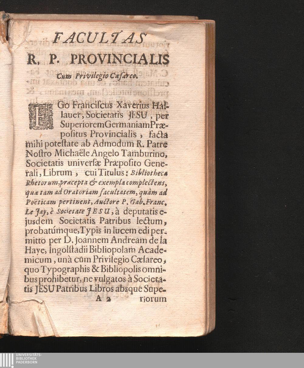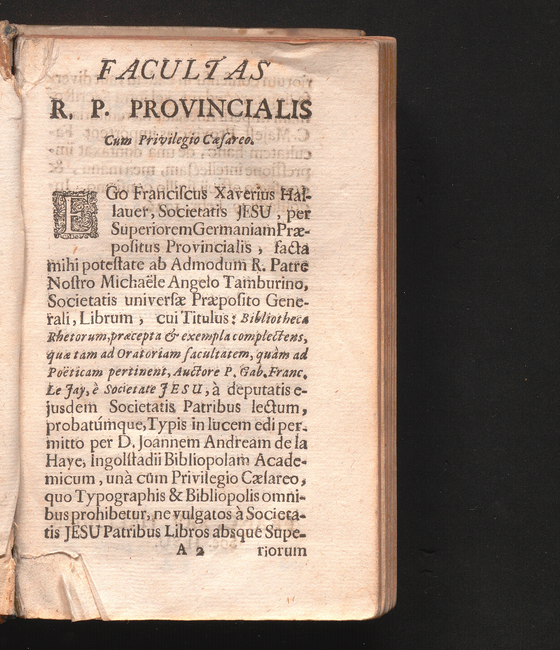 Facultas R. P. Provincialis Cum Privilegio Cӕsareo.