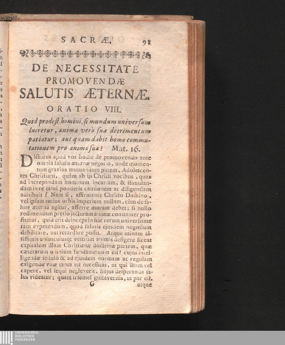 De necessitate promovendӕ salutis ӕternӕ. Oratio VIII.