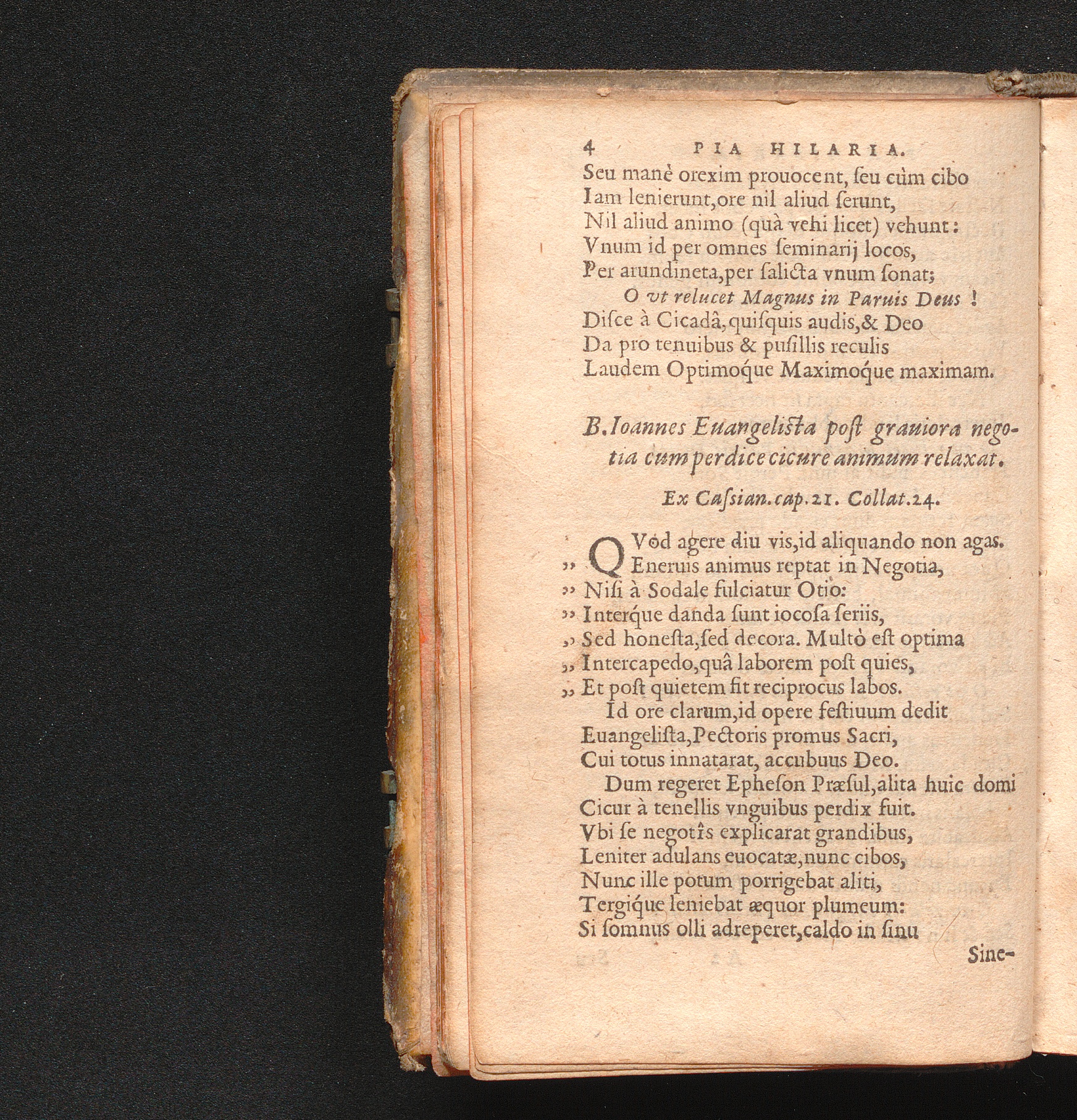 B. Ioannes Euangelista post grauiora negotia cum perdice cicure animum relaxat.