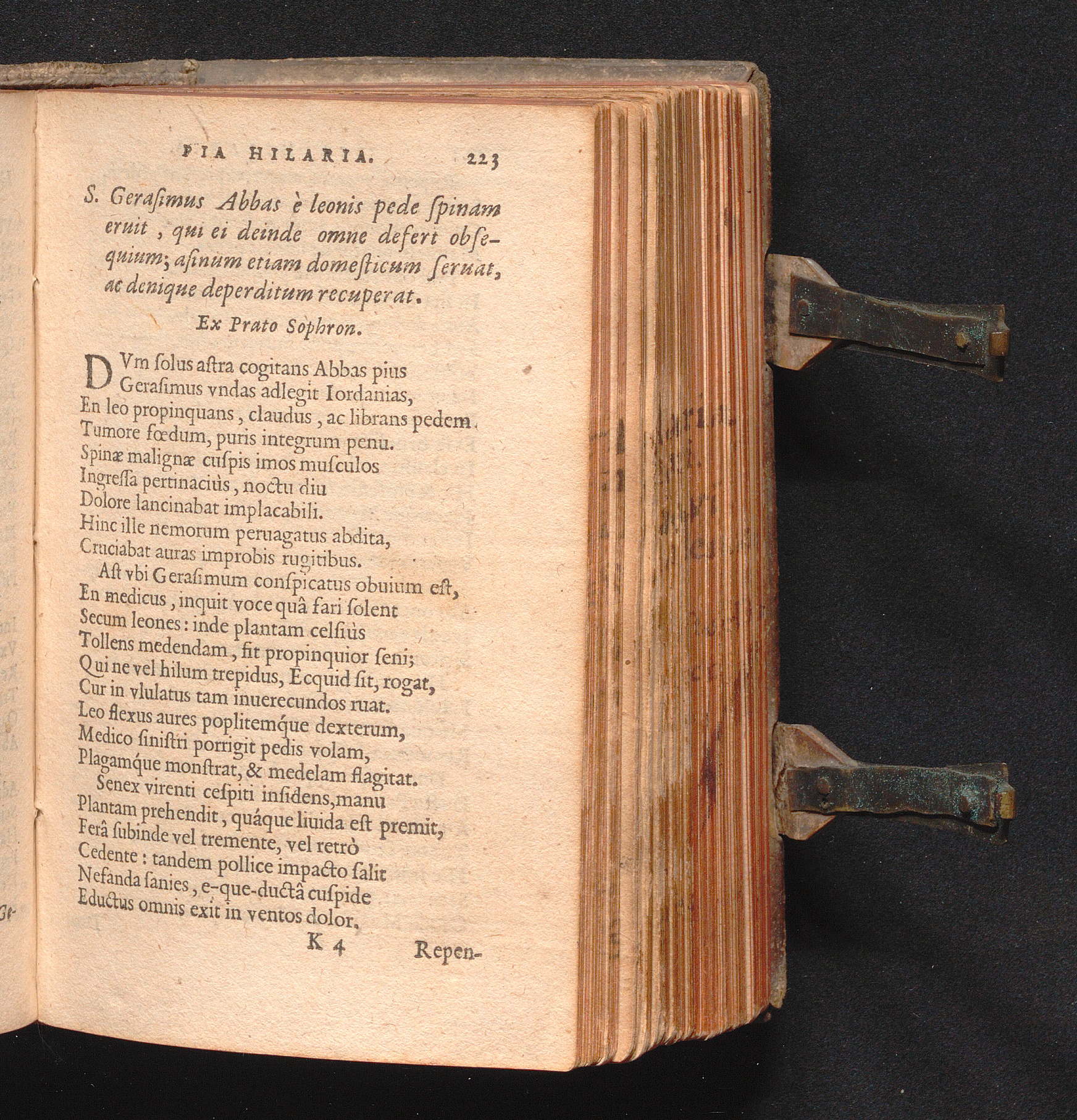 S. Gerasimus Abbas è leonis pede spinam eruit, qui ei deinde omne defert obsequium;[...]
