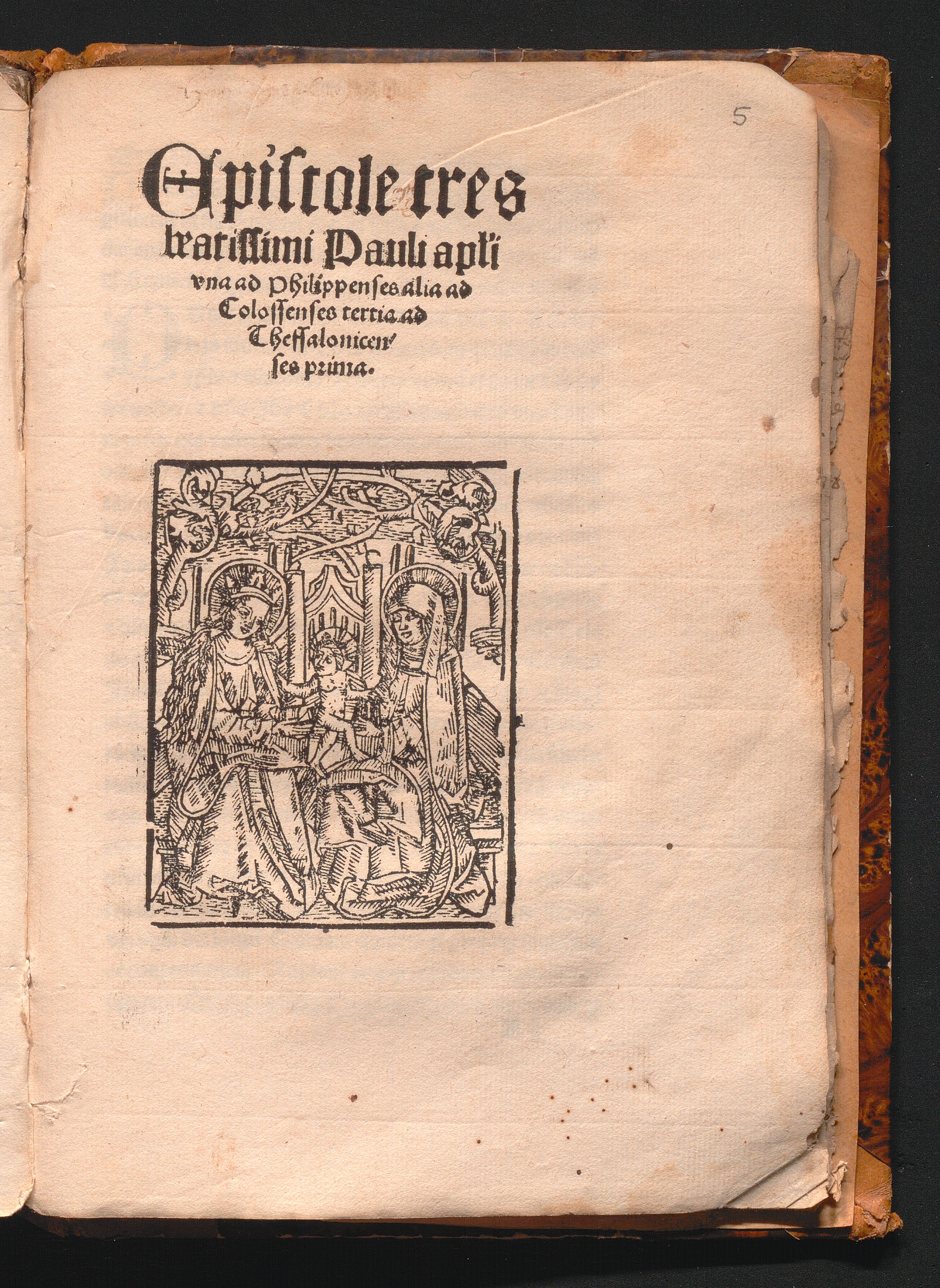 Epistole tres// beatissimi Pauli ap[osto]li : vna ad Philippenses alia ad// Colossenses tertia ad// Thessalonicen-//ses prima