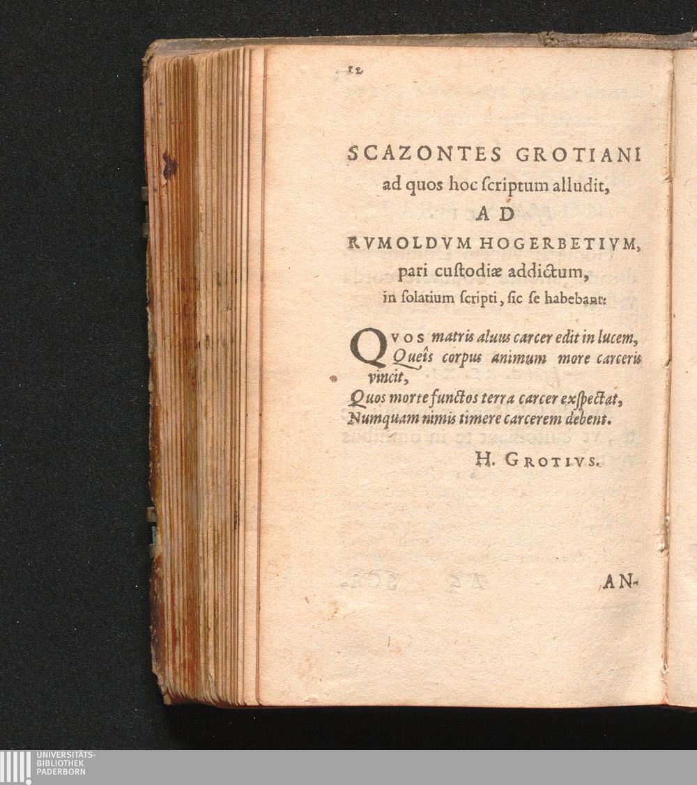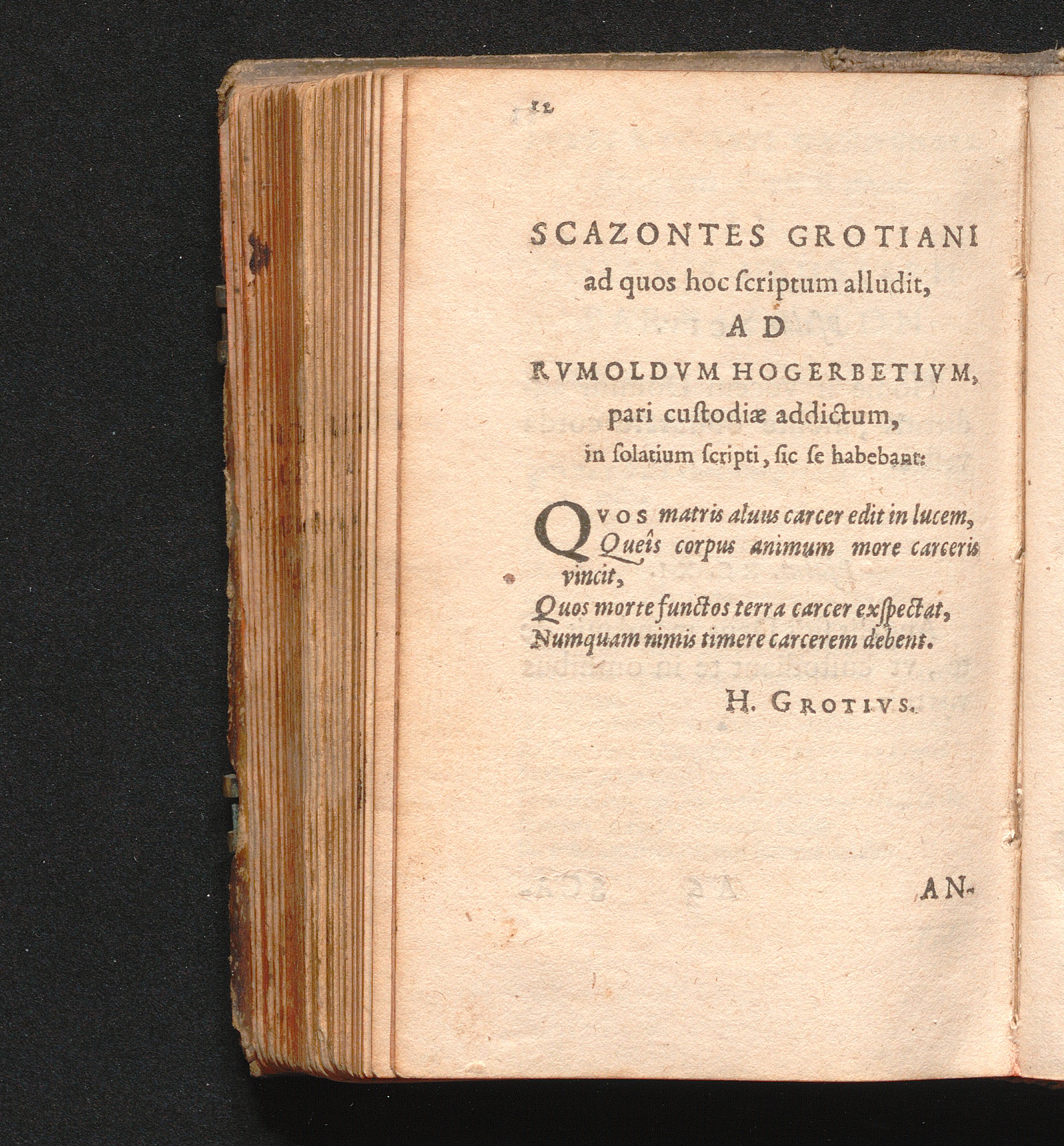 Scazontes Grotiani ad quos hoc scriptum alludit, Ad Rvmoldvm Hogerbetivm, pari custodiæ[...]
