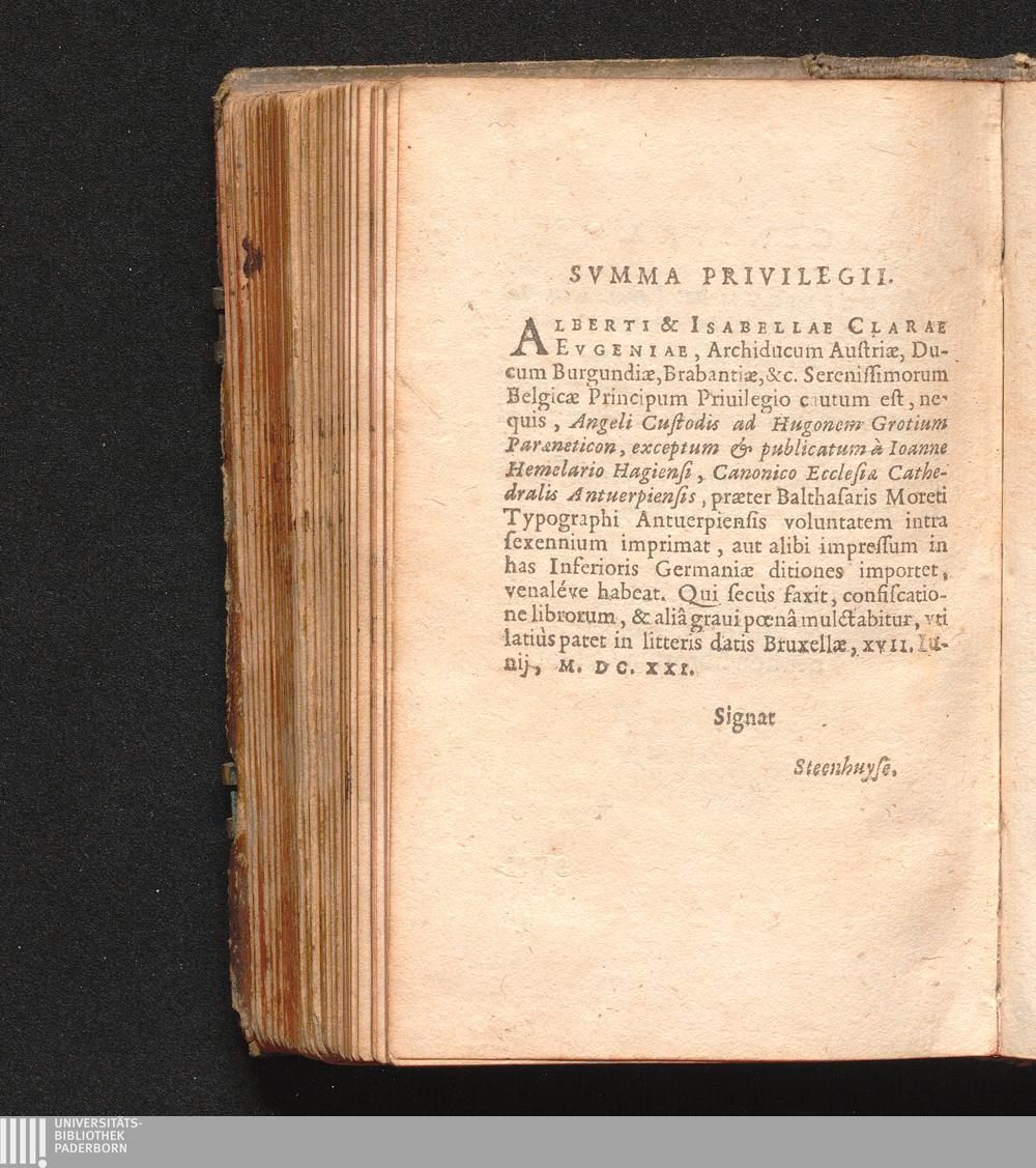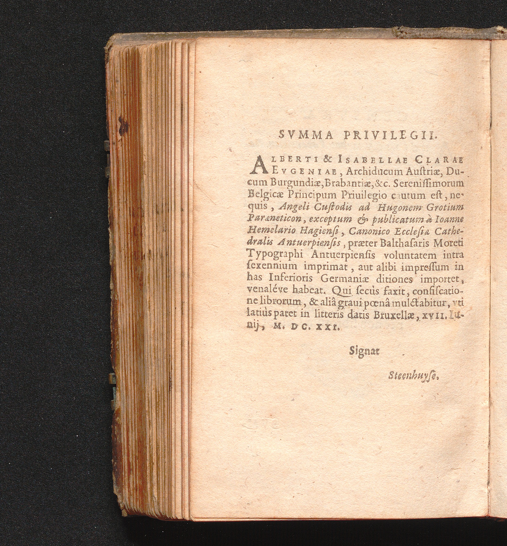 Angeli Cvstodis Ad Hvgonem Grotivm Svper Nvpero Eivs Carcere Paræneticon / exceptum & publicatum à Ioanne Hemelario Hagiensi Canonico Cath. Eccles. Antuerp.