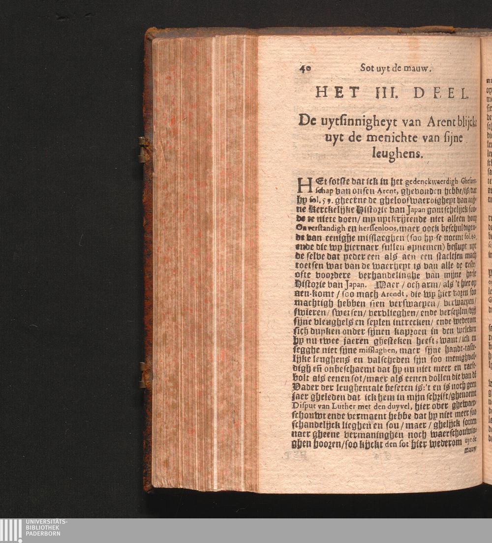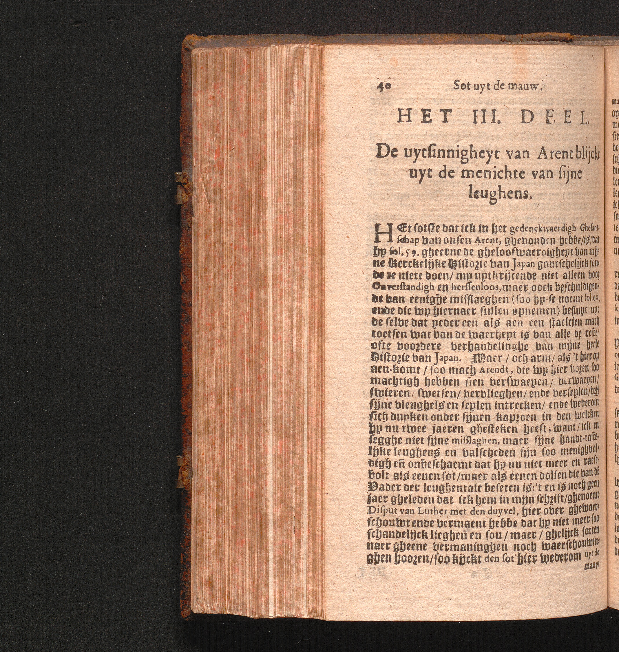 Sot Uyt De Mauw Dat is Arent Montanus. : Geuschen Predikant Binnen Schoonhoven Wederom Op De Been Met sijn Iapansche ghesantschappen / Onlanckx ghedruckt t' Amsterdam by Iacob van Meurs. Wordt tot spot ghestelt, en wederleydt, Door P. Cornelivs Hazart Priester der Soc. Iesv