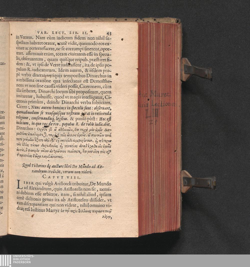 Cap. 8. Quod Victorius de auctore libri De mundo ad Alexandrum creditit, verum non[...]