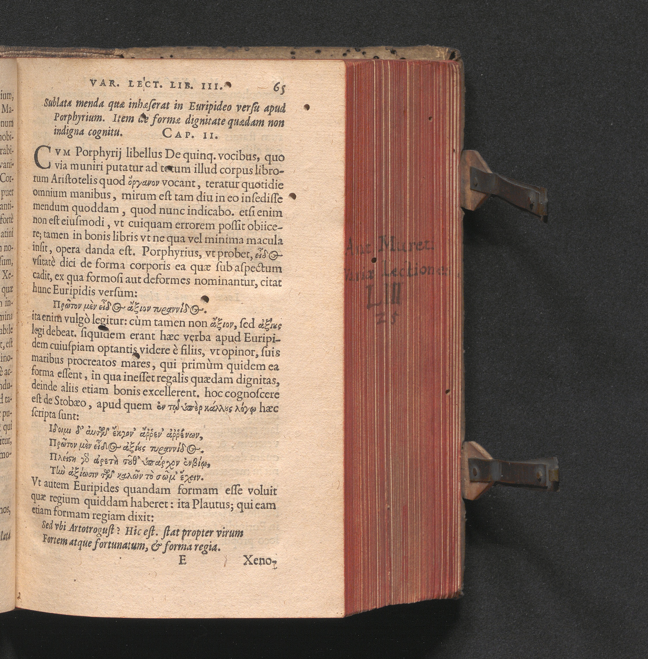 Cap. 2. Sublata menda quæ inhæserat in Euripideo versu apud Porphyrium. Item de formæ[...]