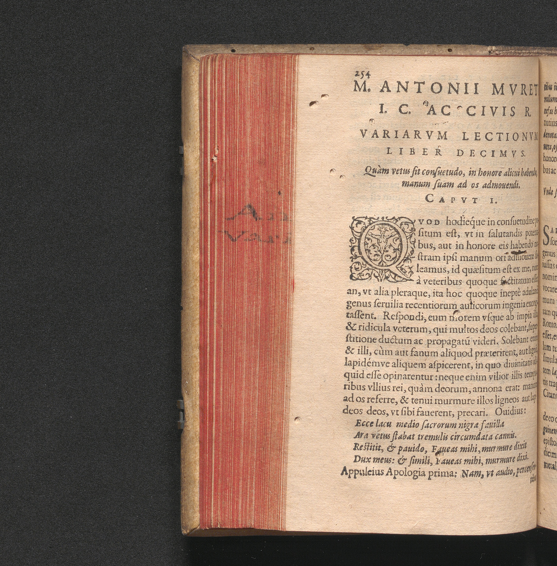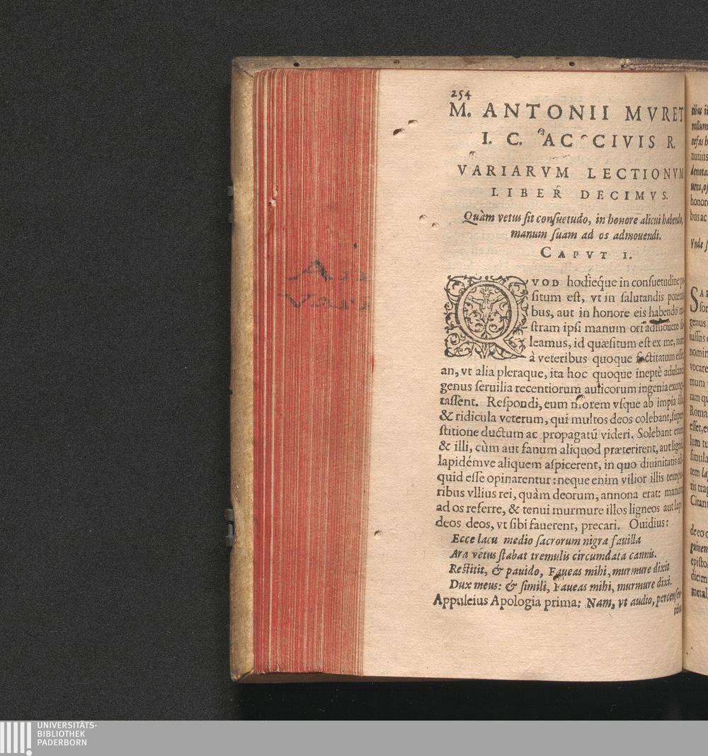Cap. 1. Quàm vetus sit consuertudo, in honore alicui habendo. manum suam ad os a[...]