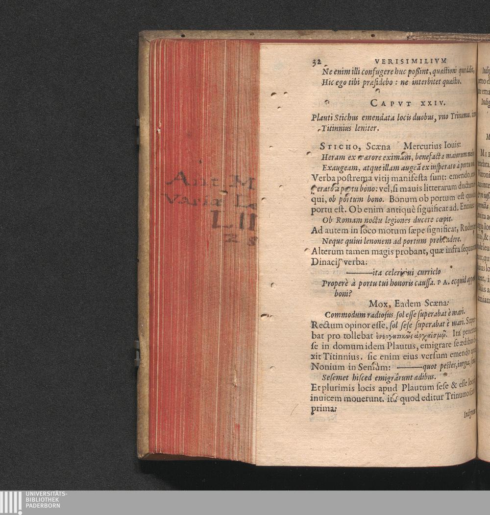 Cap. XXIV. Plauti Stichus emendata locis duobus, vno Trinumus. item Titinnius le[...]