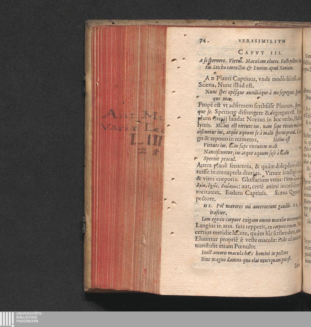 Cap. III. A se spernere. Virtus. Maculam eluere. Fusti pectere. Plautus Sticho correctus[...]